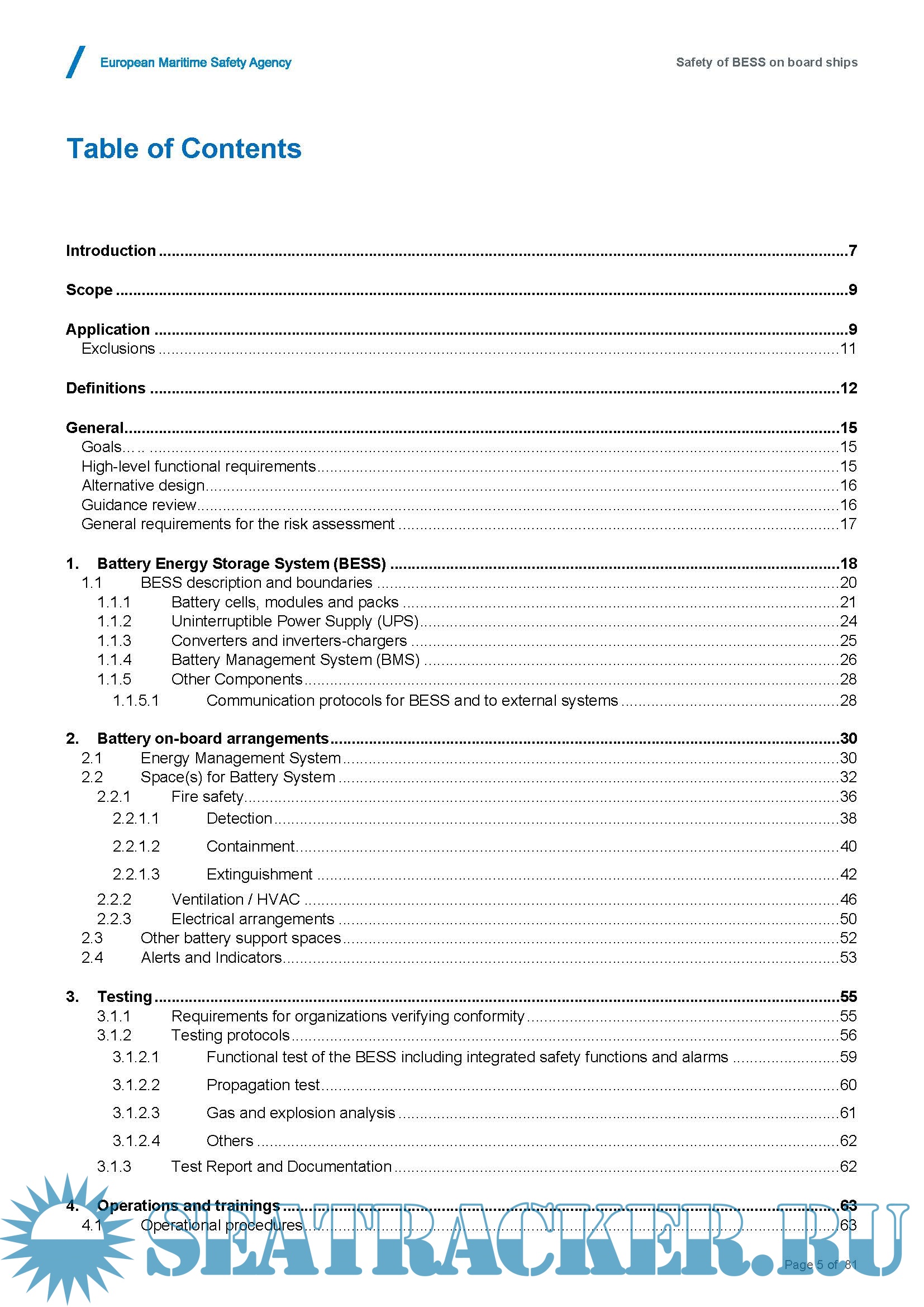 Guidance on the Safety of Battery Energy Storage Systems (BESS) on board ships