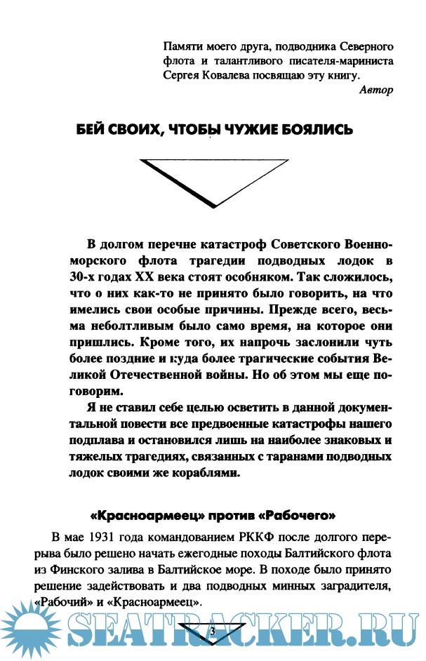 Описание: Книга известного российского писателя-мариниста Владимира Шигииа посвящена ныне забытым катастрофам советского подводного флота. Автор впервые рассказывает о предвоенных чрезвычайных происшествиях на наших субмаринах, причиной которых становились тараны наших же надводных кораблей, при этом, порой, оказывались лично замешанными первые лица государства.