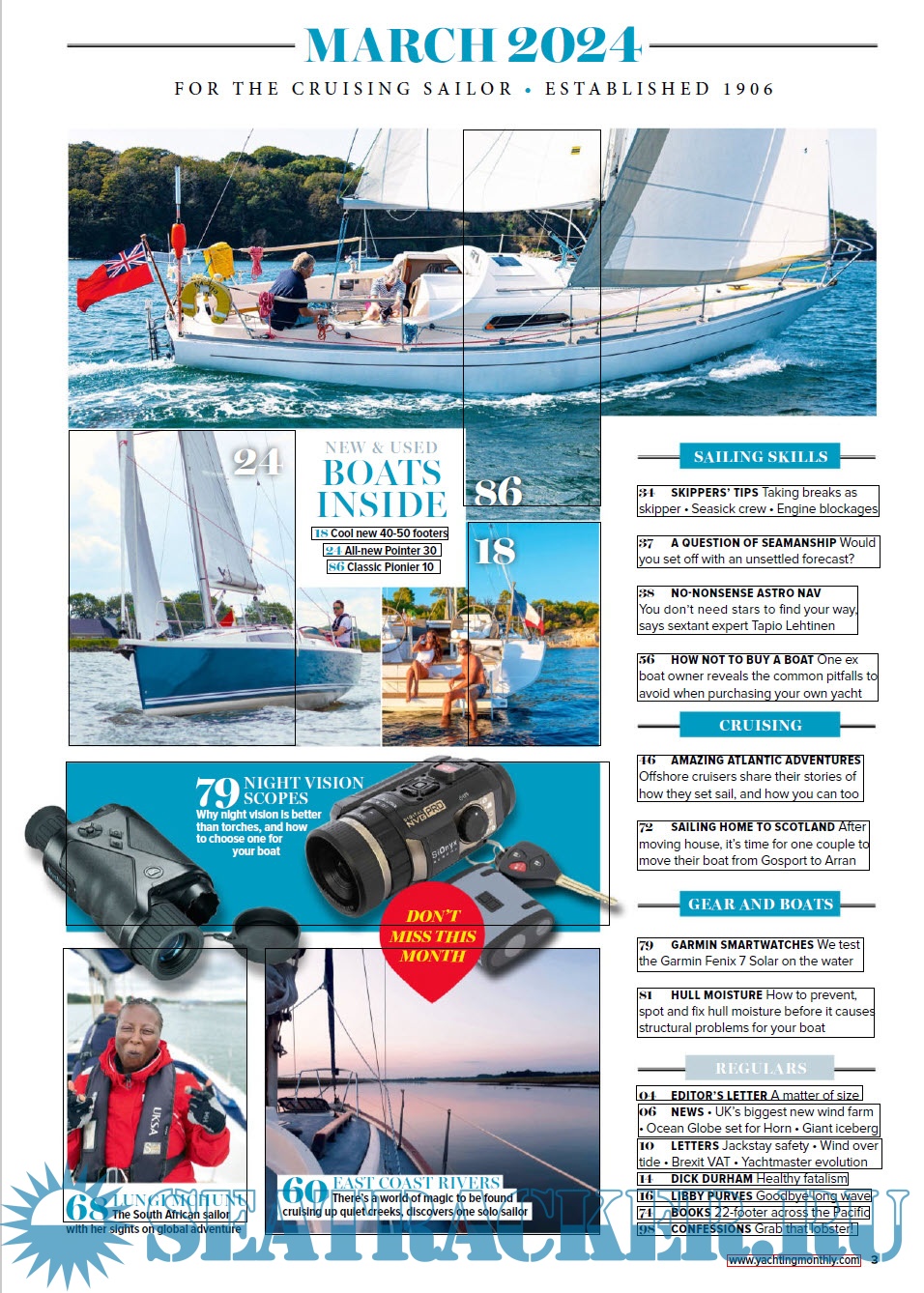 Year: 2024 Language: English Editor: Theo Stocker Genre: Periodical (magazine) Publisher: Future Publishing Limited Edition: March 2024 Format: PDF Quality: eBook Pages count: 100 Description: Yachting Monthly is at the heart of the British yachting market and is for people who actively sail their boats – whether cruising across the channel, around the coast or further afield in blue waters.It provides an entertaining mix of vital information for cruising yachtsmen with all levels of experience, which maximises their enjoyment, increases their skills and gives them the confidence to broaden their horizons