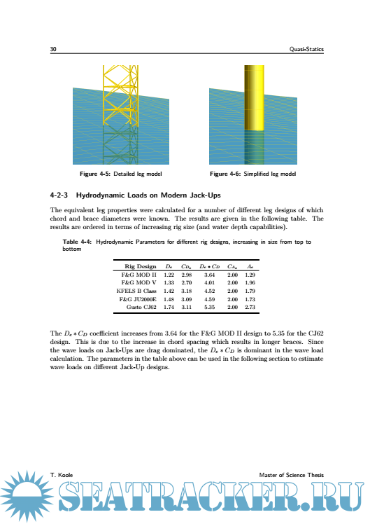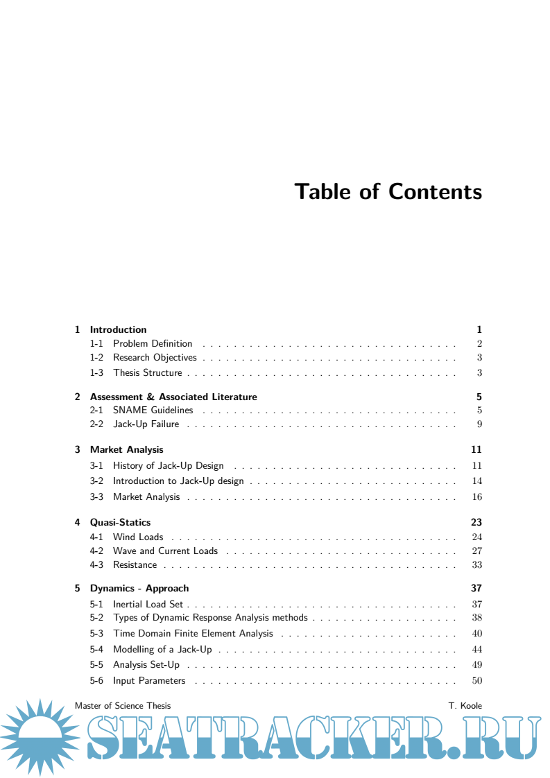Year: 2015 Language: English Author: T. Koole Genre: Other Publisher: Delft University of Technology Format: PDF Quality: eBook Pages count: 116 Description: Jack-Ups have been used since 1954, and have become the most widely used Mobile Offshore Drilling Unit (MODU) for offshore exploration and development purposes that are carried out by oil companies such as Shell. They have been a subject of much research during the end of the 1980’s, but have seen limited publications since the change of the millennium. In the meantime, the industry has seen the introduction of a new breed of Jack-Up designs, capable of operating in water depths up to 170 meters in harsh environments such as The North Sea. In order to ensure safe operation of these newer Jack-Ups, a study is carried out to update Shell’s in-house knowledge. This allows the company to gain more insight into the various designs available and also helps to identify the governing design parameters within Jack-Up assessments. Furthermore, the future of Jack-Up designs is investigated as it will help Shell shape prospective offshore developments. A market analysis identifies the trends within Jack-Up designs which can be used to generate the models used in the main body of this research. Quasi-static environmental loads are analysed to investigate the effects of using Jack-Ups in greater water depths. The dynamic response is then added as Jack-Ups are known to show significant dynamic behaviour. Timedomain FEM is used as it allows for the incorporation of the non-linearities that are present in the system. The final chapters of this thesis focus on the future of Jack-Up design. Firstly, the limits of the current design philosophy are identified. Secondly, four possible solutions to overcome these boundaries are proposed and briefly analysed to evaluate their potential. This thesis has shown that modern Jack-Ups are characterised by large triangular hulls, holding three spacious truss legs. Rack-chocks form a very stiff leg-hull connection which has allowed designers to reduce brace diameters and increase chord spacing. This has lead to an increase in problems associated with Rack Phase Difference. Wind loads increase significantly with these modern rig designs but wave loads remain fairly unchanged due to increased leg spacing. Modern Jack-Ups therefore become more wind-dominated when compared to older designs. This stresses the need for accurate calculation of wind-loads during JackUp assessment. The dynamic response analysis and its non-linearities remain to play an important role in the assessment of the structure. Significant dynamic amplification of the oscillating wave loads is found. The future of the current Jack-Up design philosophy is limited to approximately 200 meters. As hull weights and water depths increase, a strong increase in leg stiffness is required to prevent resonance from occurring. Fabrication and operational limits prevent the stiffness from increasing further. Solutions to overcome these boundaries show the difficulties of designing hybrid structures like Jack-Ups; improvements made in one area will often lead to compromises being made in another.