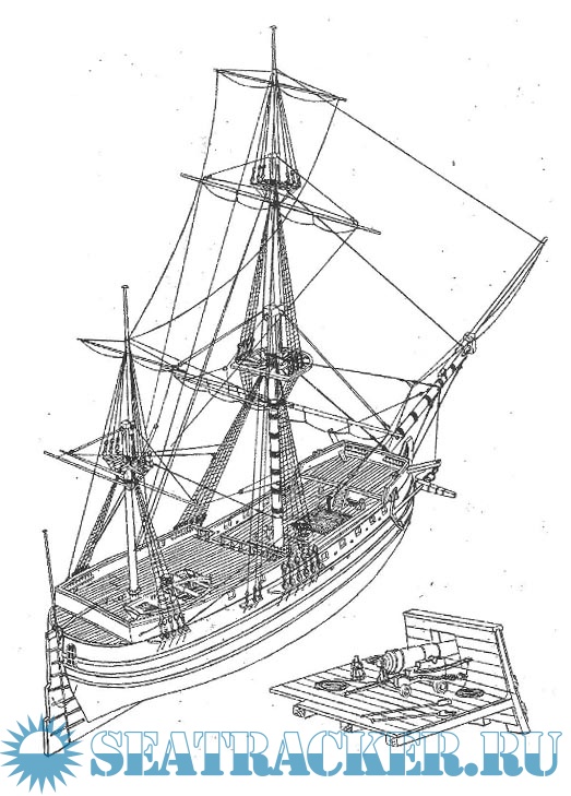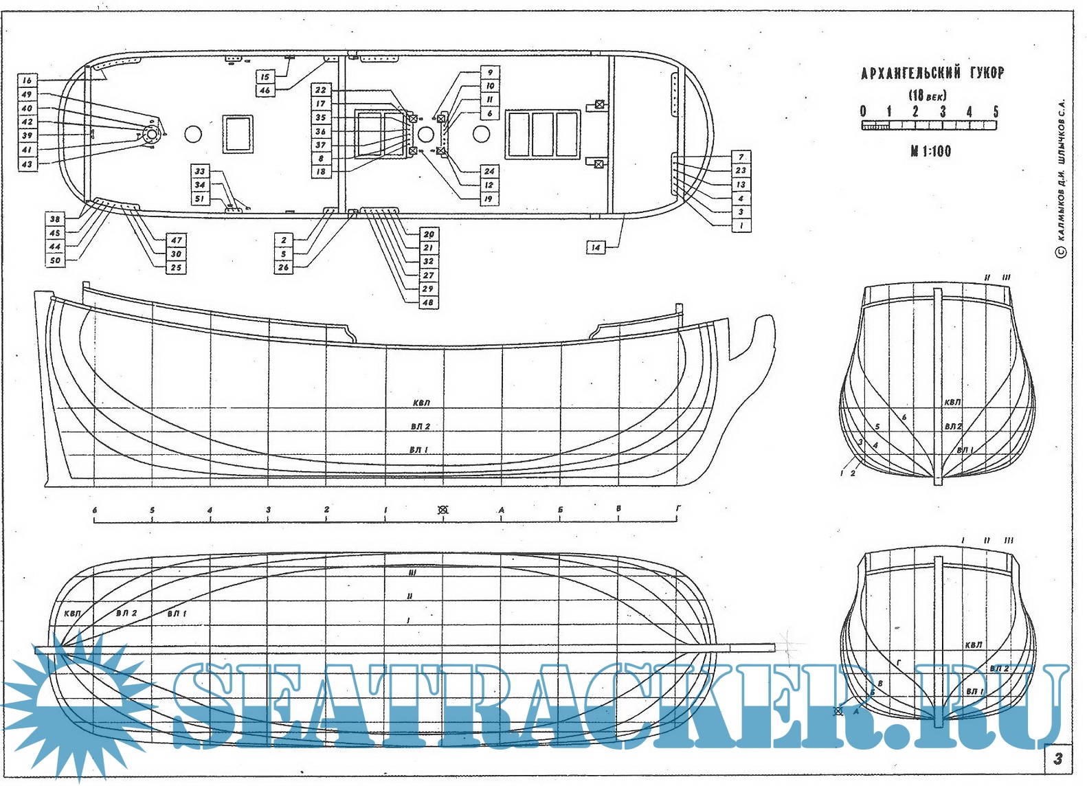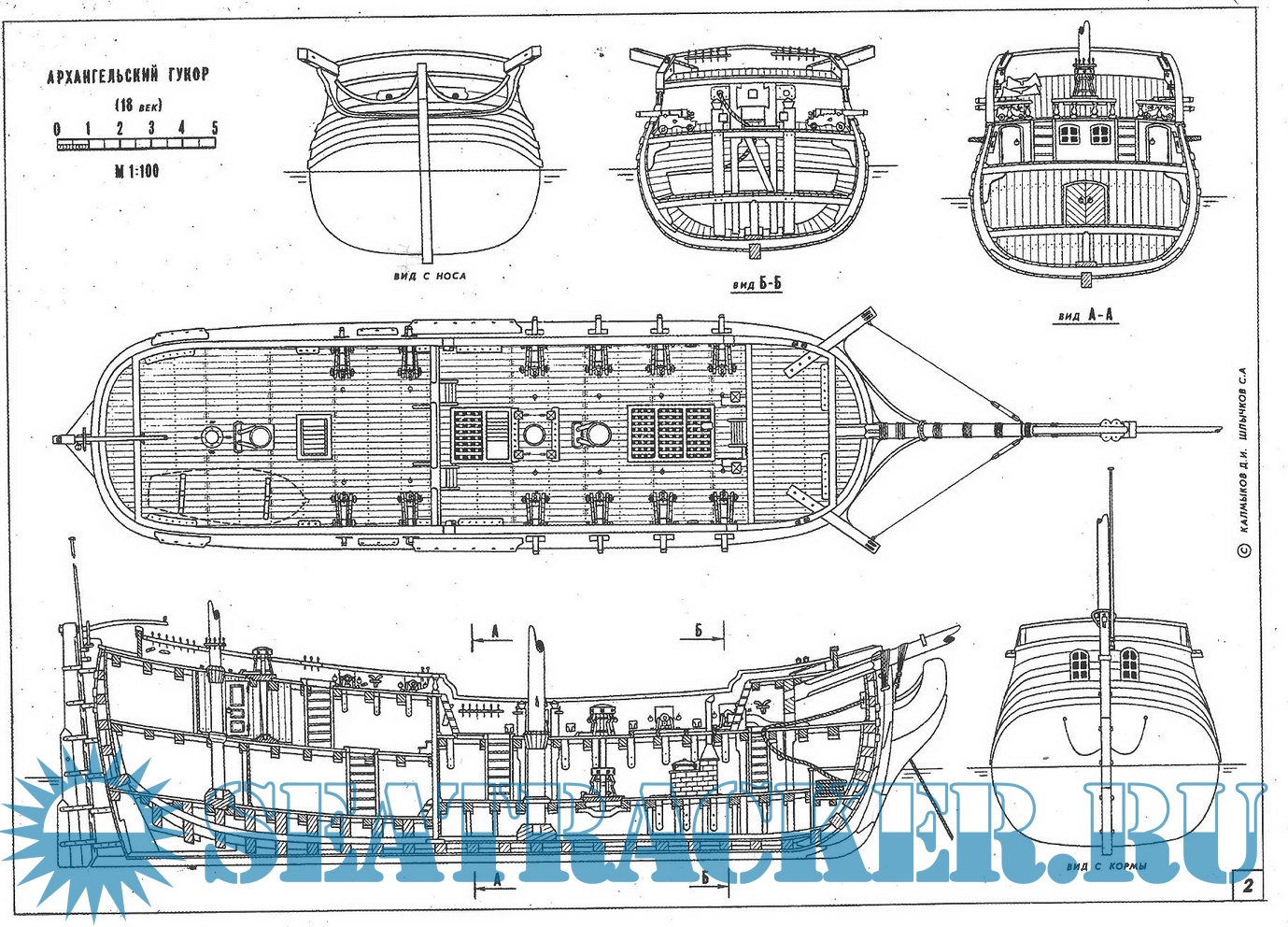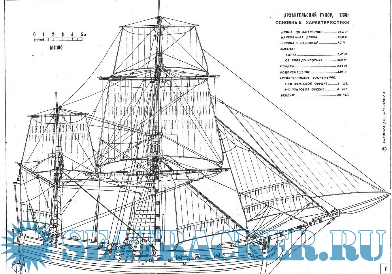 Чертежи архангельского 12-пушечного гукора "Кроншлот" 1736 год