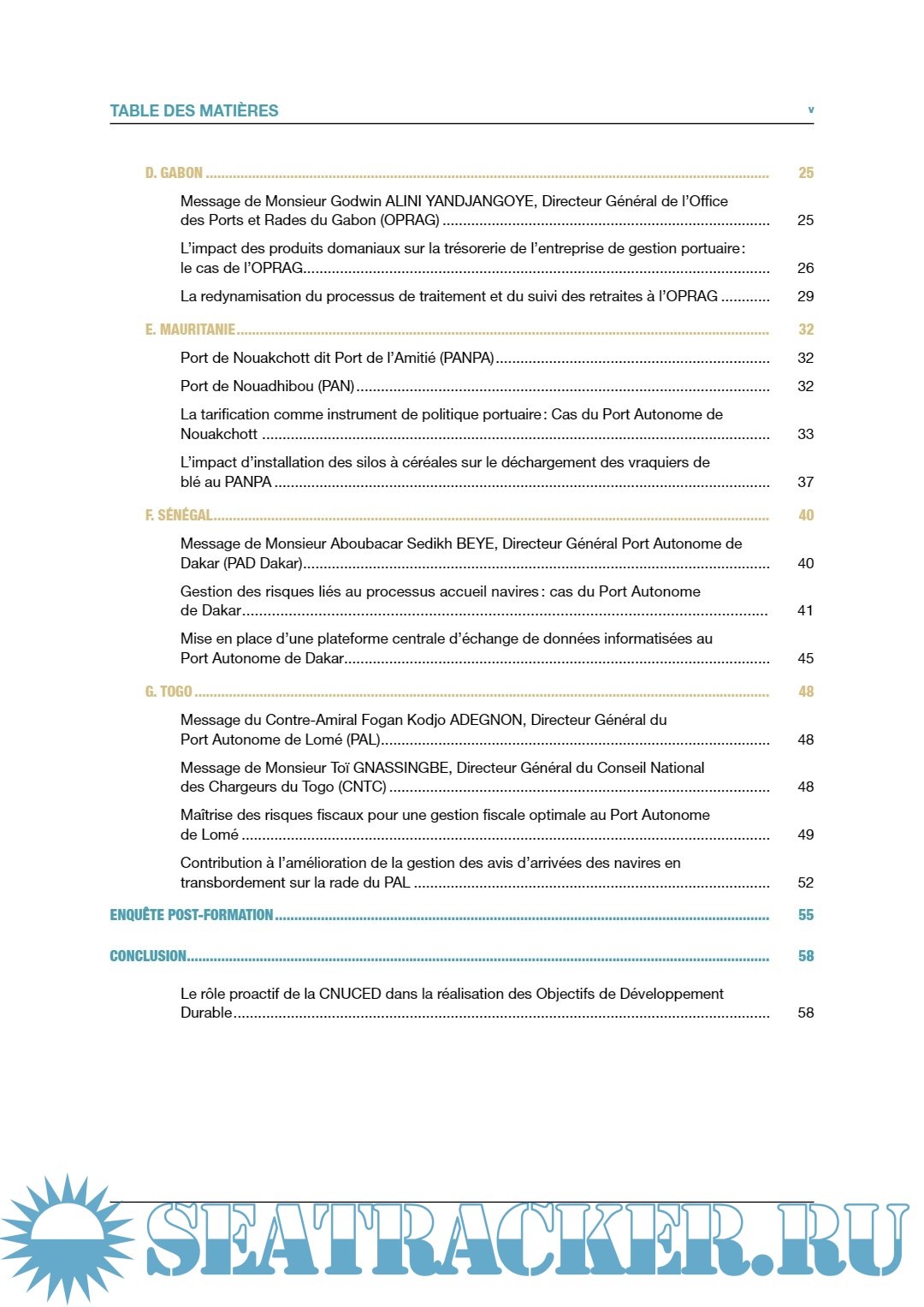 Description: Cette publication a été produite dans le cadre des activités du Programme de Gestion Portuaire TrainForTrade de la Conférence des Nations Unies sur le commerce et le développement (CNUCED). Elle a été financée par les ports du Bénin, du Cameroun, de la Côte d'ivoire, du Gabon, de la Guinée, d’Haïti, du Sénégal et du Togo. Ce projet a aussi reçu le soutien des grands ports maritimes de Nantes Saint-Nazaire et de Marseille Fos, France.