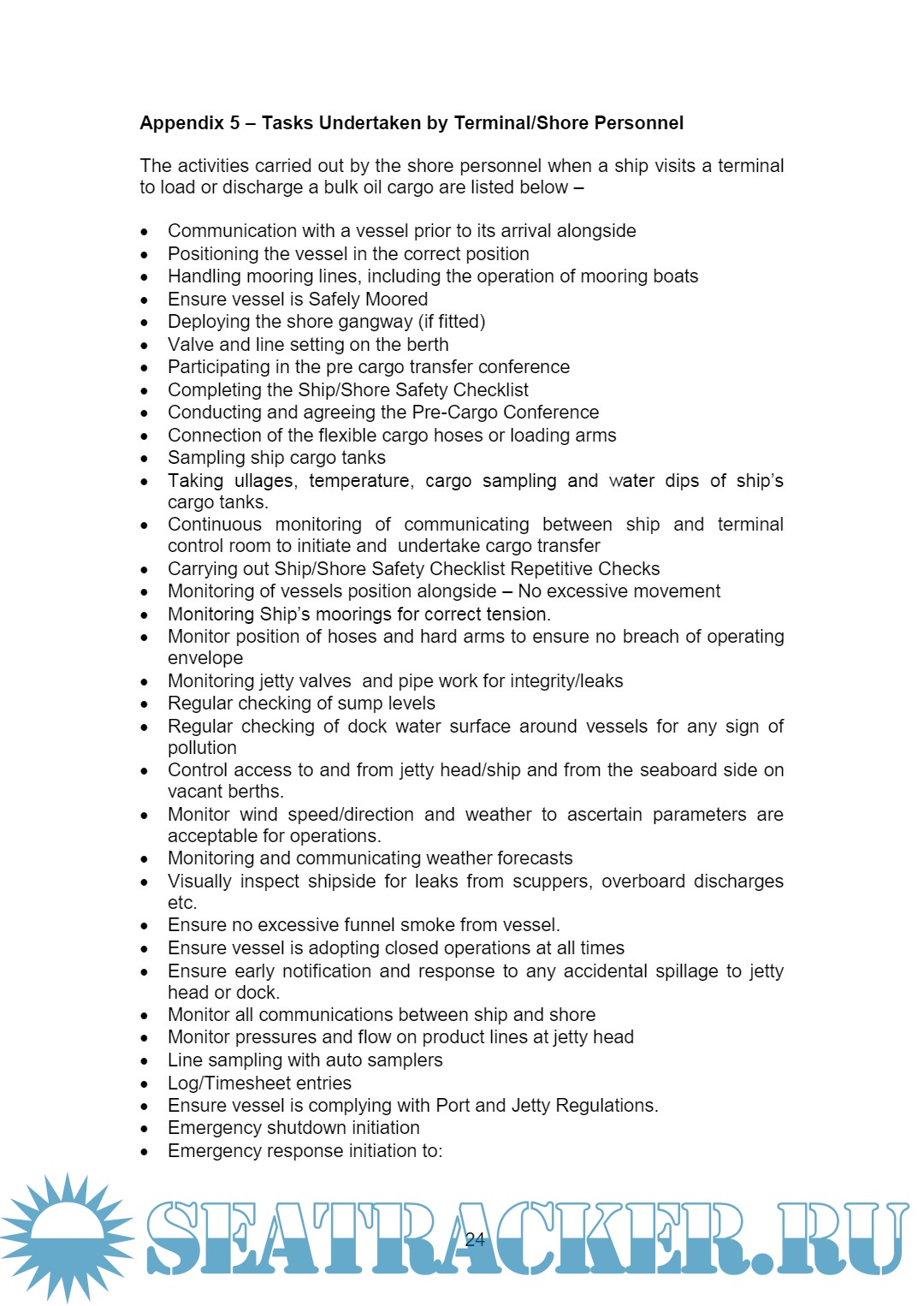 The paper will look at the tasks normally carried out at the berth by terminal