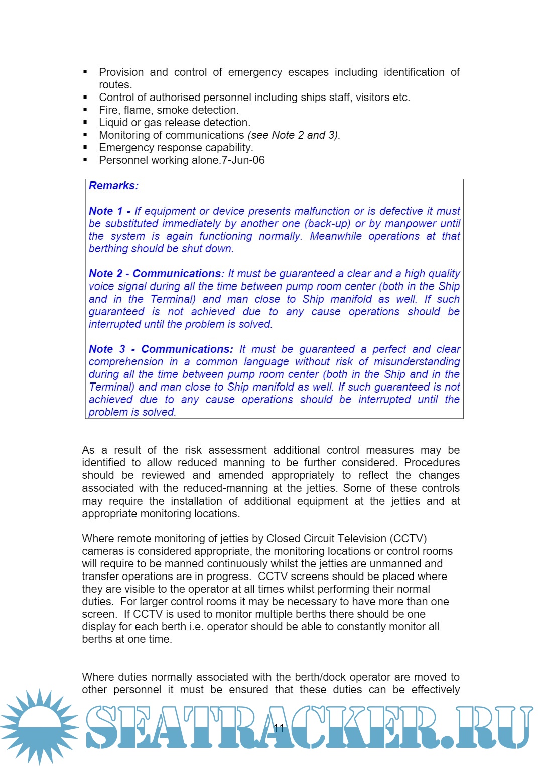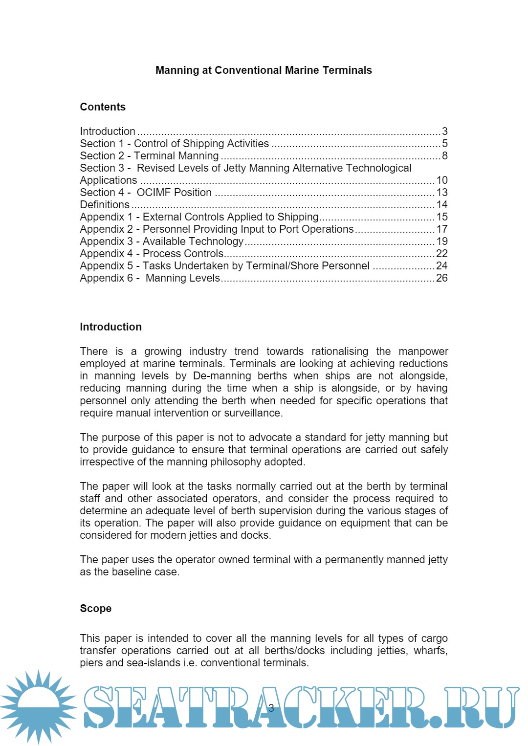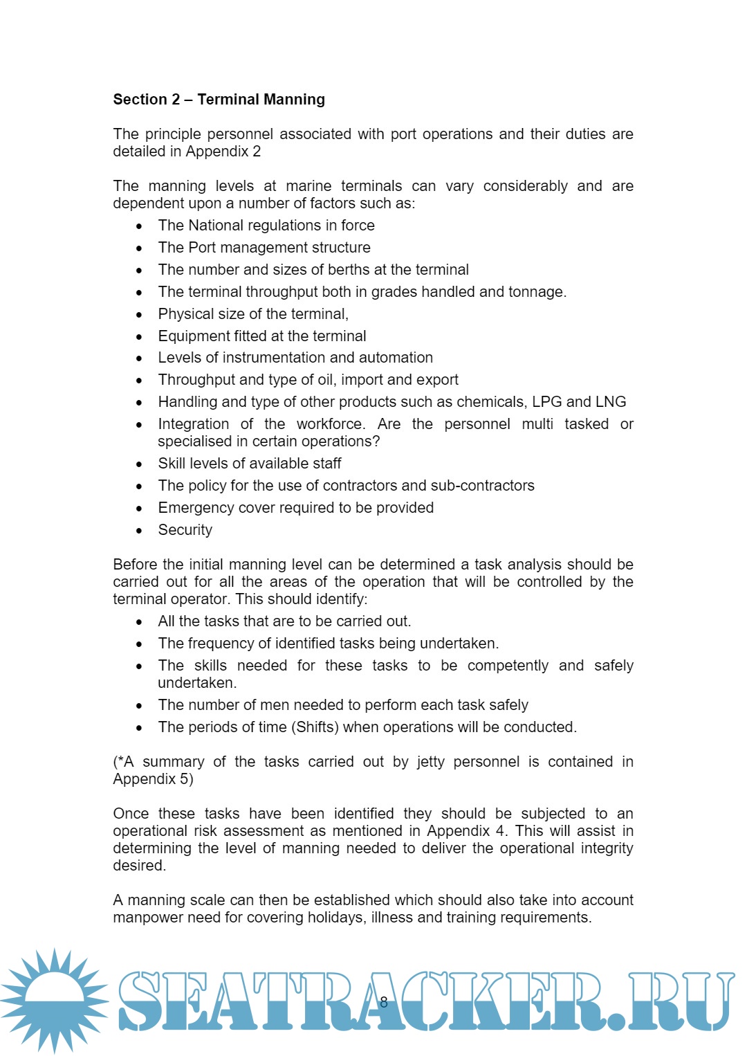 Year: 2008 Language: English Author: OCIMF Genre: Guide Publisher: OCIMF Format: PDF Quality: eBook Pages count: 28 Description: There is a growing industry trend towards rationalising the manpower employed at marine terminals. Terminals are looking at achieving reductions in manning levels by De-manning berths when ships are not alongside, reducing manning during the time when a ship is alongside, or by having personnel only attending the berth when needed for specific operations that require manual intervention or surveillance. The purpose of this paper is not to advocate a standard for jetty manning but to provide guidance to ensure that terminal operations are carried out safely irrespective of the manning philosophy adopted. The paper will look at the tasks normally carried out at the berth by terminal staff and other associated operators, and consider the process required to determine an adequate level of berth supervision during the various stages of its operation. The paper will also provide guidance on equipment that can be considered for modern jetties and docks. The paper uses the operator owned terminal with a permanently manned jetty as the baseline case.