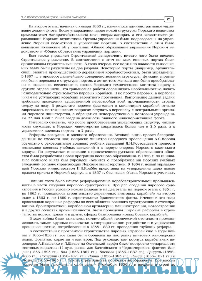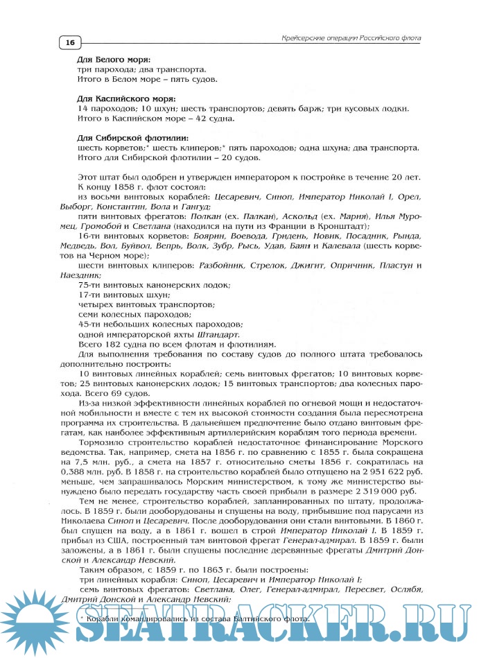 Год выпуска: 2009 Язык: русский Автор: Катаев В.И. Жанр: История Издательство: Моркнига Формат: PDF Качество: Изначально компьютерное (eBook) Количество страниц: 330 Описание: В книге В.И.Катаева читатель прочтет о малоизвестных страницах истории нашей Родины - о крейсерских операциях Российского флота за период: с 60-х годов XIX века и до окончания Русско-японской войны. Во время этой несчастной для нас войны фактически впервые были широко использованы в боевой обстановке теоретические и практические наработки так называемой крейсерской доктрины. Именно война 1904–1905 гг. помогла правильно оценить или опровергнуть ее постулаты, так долго влияющие на морскую политику России до начала XX века. Книга богато иллюстрирована уникальными фотографиями (некоторые публикуются впервые), схемами кораблей, машин и механизмов, а также картами и планами проведения крейсерских операций. Книга представляет интерес для широкой аудитории любителей истории флота и для тех, кто интересуется морской историей Родины. Схемы, карты и большинство чертежей кораблей выполнены лично автором.