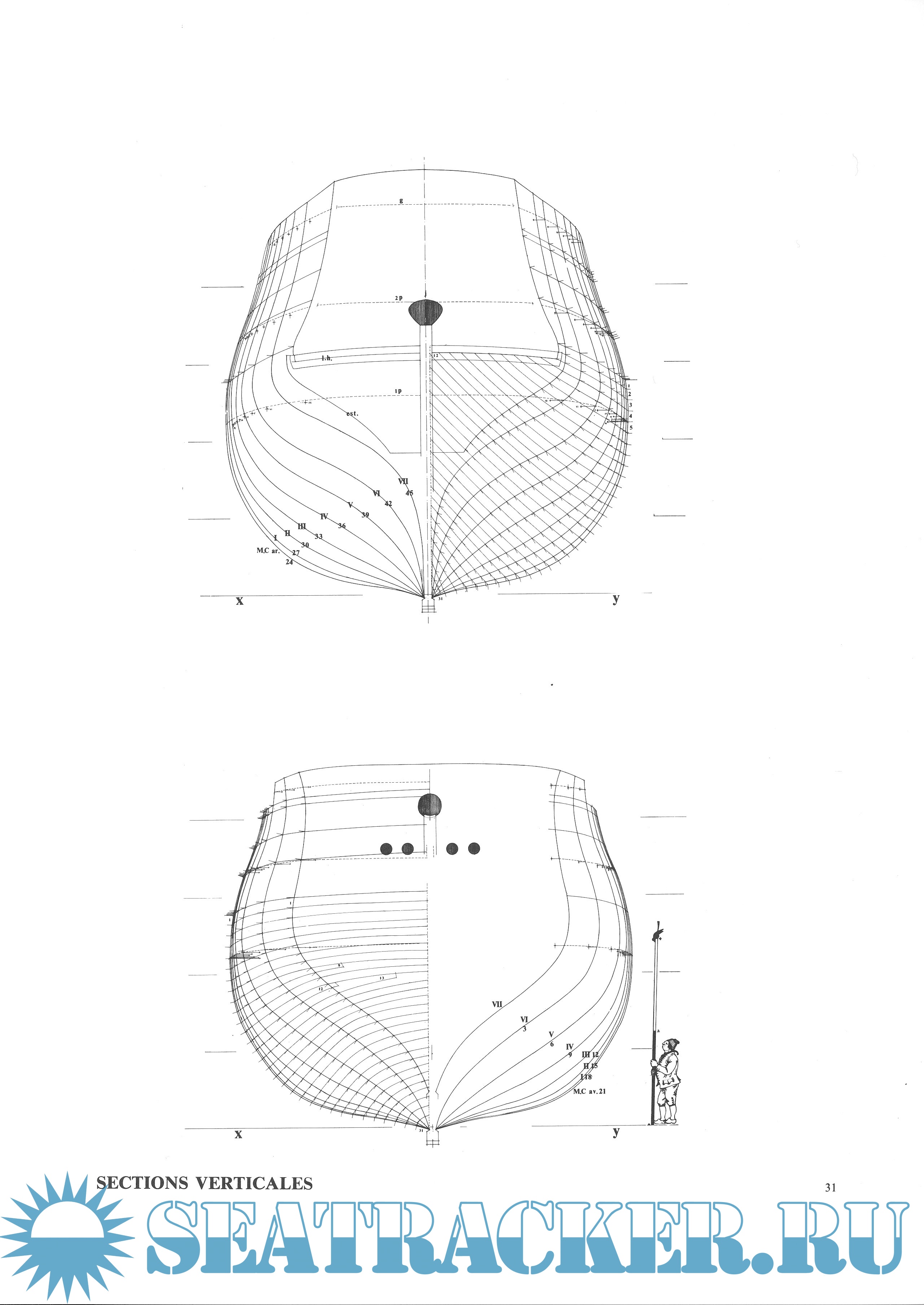 Чертежи Chaloupe armee (артиллериский баркас) 1834 год - Jean Boudriot [1987, TIF]