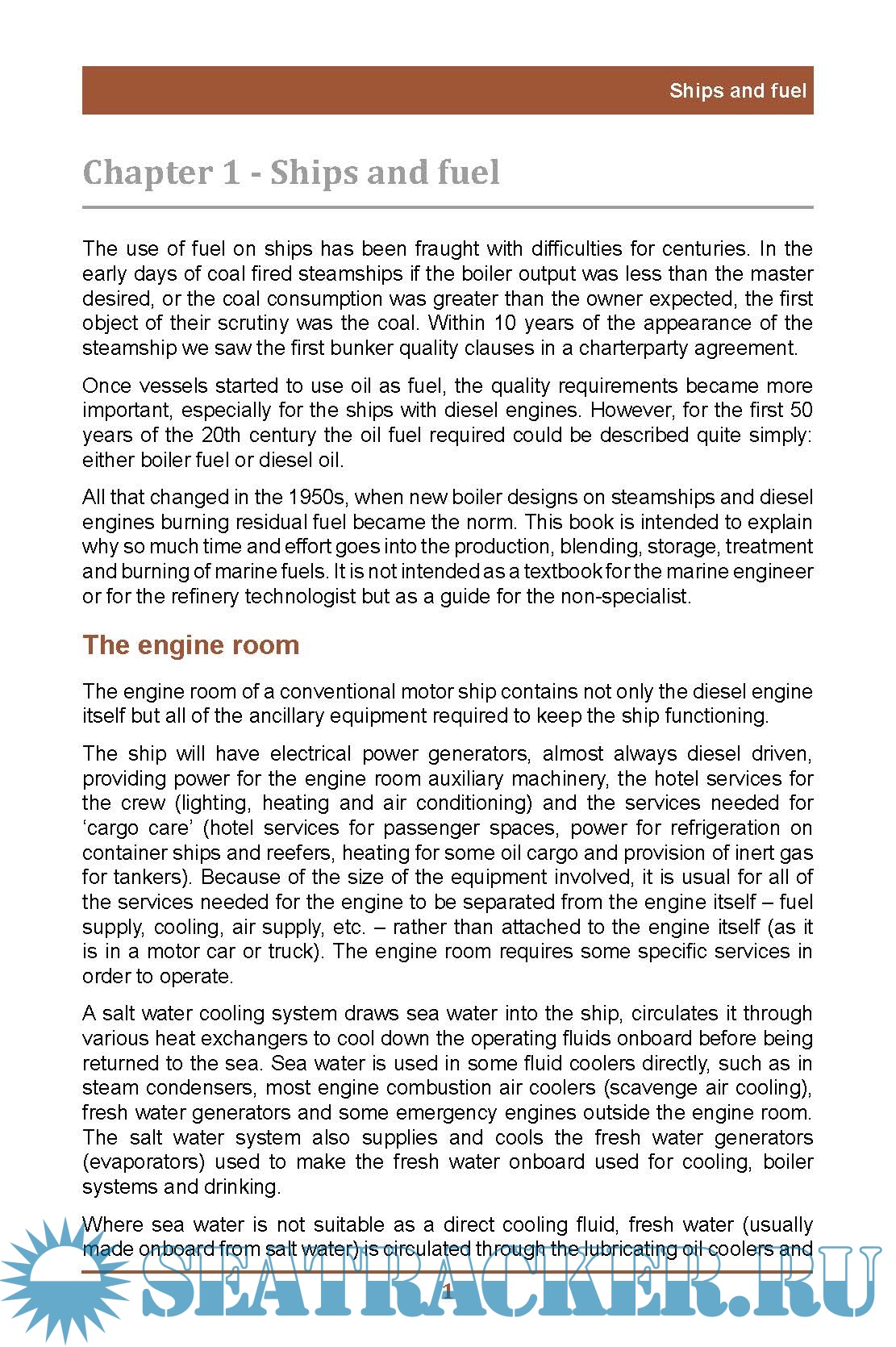 Year: 2012 Language: English Author: Nigel Draffin Genre: Practical guide Publisher: Petrospot Limited Edition: 1st ISBN: 9781908663009 Format: PDF Quality: eBook Pages count: 165 Description: Bunker Fuel for Marine Engines - A Technical Introduction sheds light on the complicated relationship between ships engines and the marine fuels that power them and provides the reader with a solid introduction to a subject which every supplier or user of marine fuels would do well to understand. Draffin takes the reader through the complete process of burning fuel onboard, from storage of fuel to dealing with the exhaust, before looking at the different types of diesel engine and their specific fuel requirements. He looks at gas turbines, fuel cells and developments in shore power, and covers boilers, fuel and accommodation heating and incinerators, before also looking at waste heat recovery systems. Fuel types and bunker quality standards are, of course, laid out for the reader, as are blending, storage and onboard fuel treatment, where the work of separators, purifiers, clarifiers, decanters, homogenisers, filters and other engine room kit is explained. Fuel heating, pumps, fuel measurement and storage are amply covered as are an engine’s sensitivity to fuel qualities. Importantly, the book looks at emissions and how they might be controlled, and also at unconventional fuels such as biodiesel, shale oil, liquefied and compressed natural gas, liquefied petroleum gas and even coal.