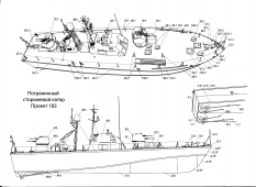 Описание: 23 листа цветных выкроек и инструкций для изготовления бумажной модели большого торпедного катера или пограничного катера проекта 183 или катера-цели проекта 183Ц (шифр "Большевик") в масштабе 1:100