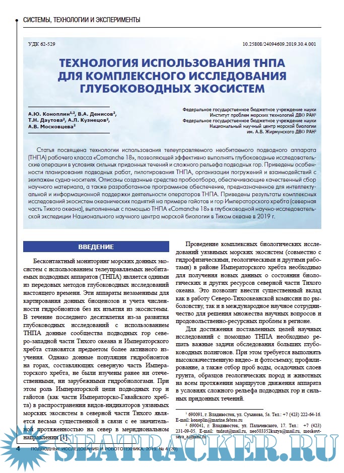 Технология использования ТНПА для комплексного исследования глубоководных экосистем