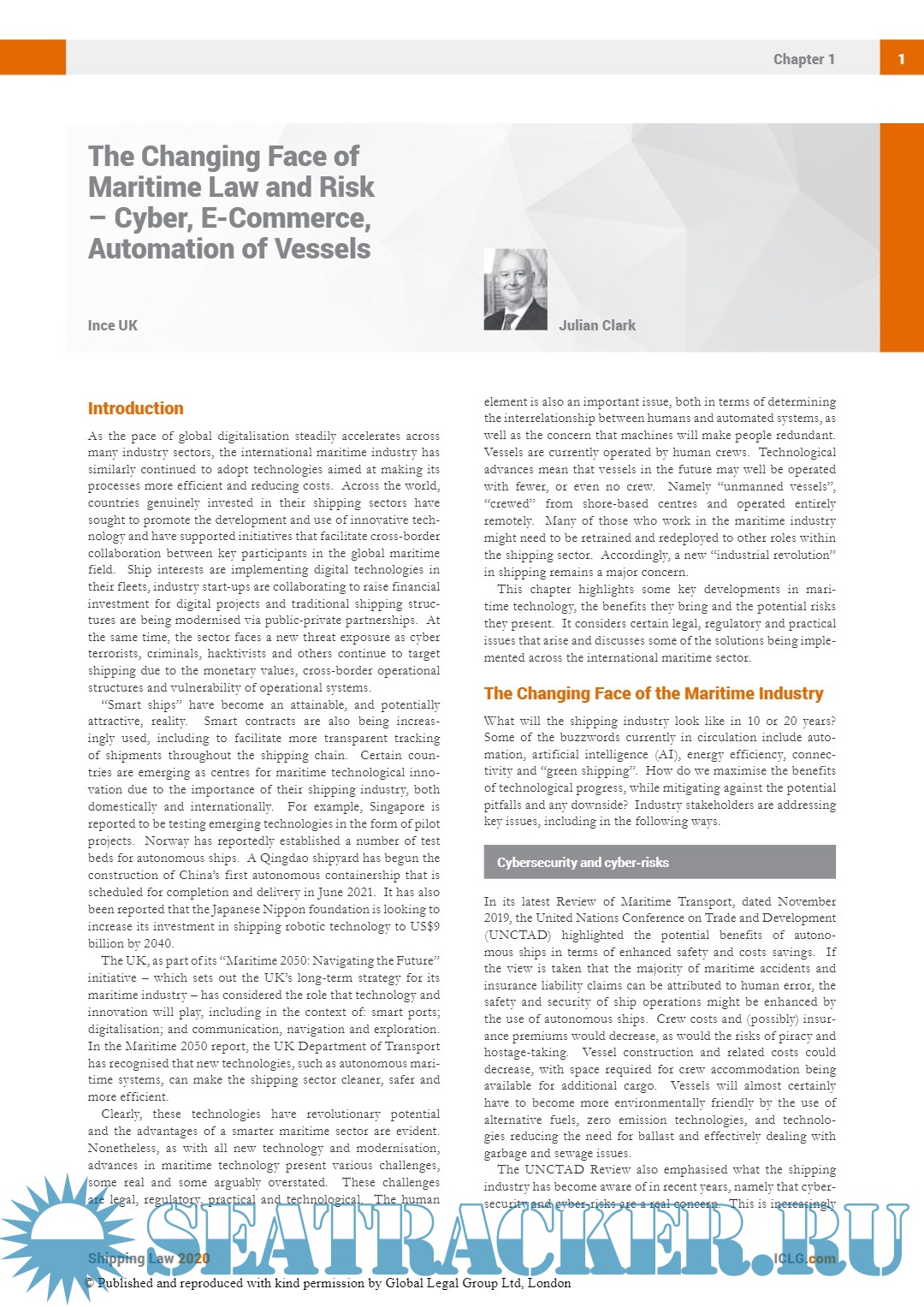 The international shipping industry is responsible for the carriage of approximately 80% of world trade and is, therefore, the key contributor to the global economy. Whilst financial, political, environmental and technological factors might influence the global economy in other ways, the international maritime sector has always played, and will continue to play, a major role in facilitating international trade. Indeed, the UK Government has recognised the importance of the shipping industry to the UK economy and to global trade in “Maritime 2050: Navigating the Future”, a compre- hensive document from the Department of Transport that sets out the UK’s maritime strategy. Other governments around the globe have also traditionally emphasised the importance of their maritime industry to the domestic and global economy and have developed their own strategies for enhancing the shipping sector.