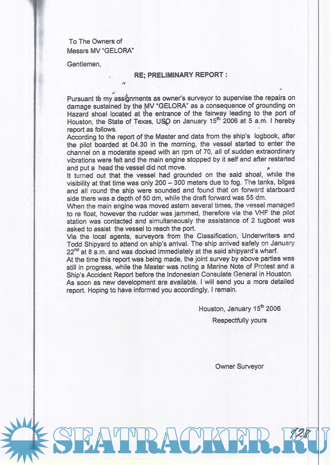 > Writes reports on damage to ship or cargo, on and off - hire surveys accidents and incidents.
