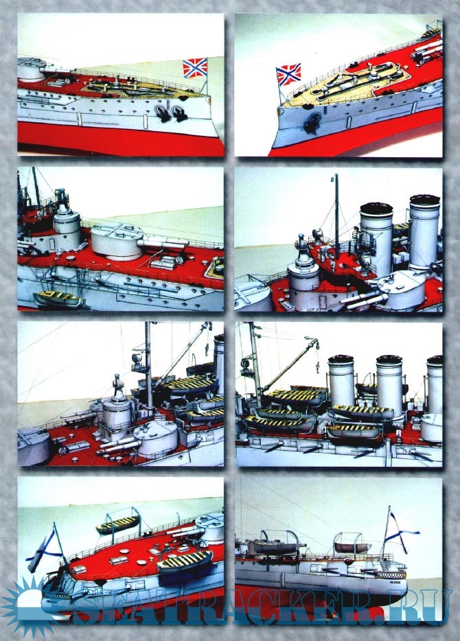 29 листов цветных выкроек и инструкций для изготовления бумажной модели броненосного крейсера ''Рюрик'' в масштабе 1:200Скриншоты