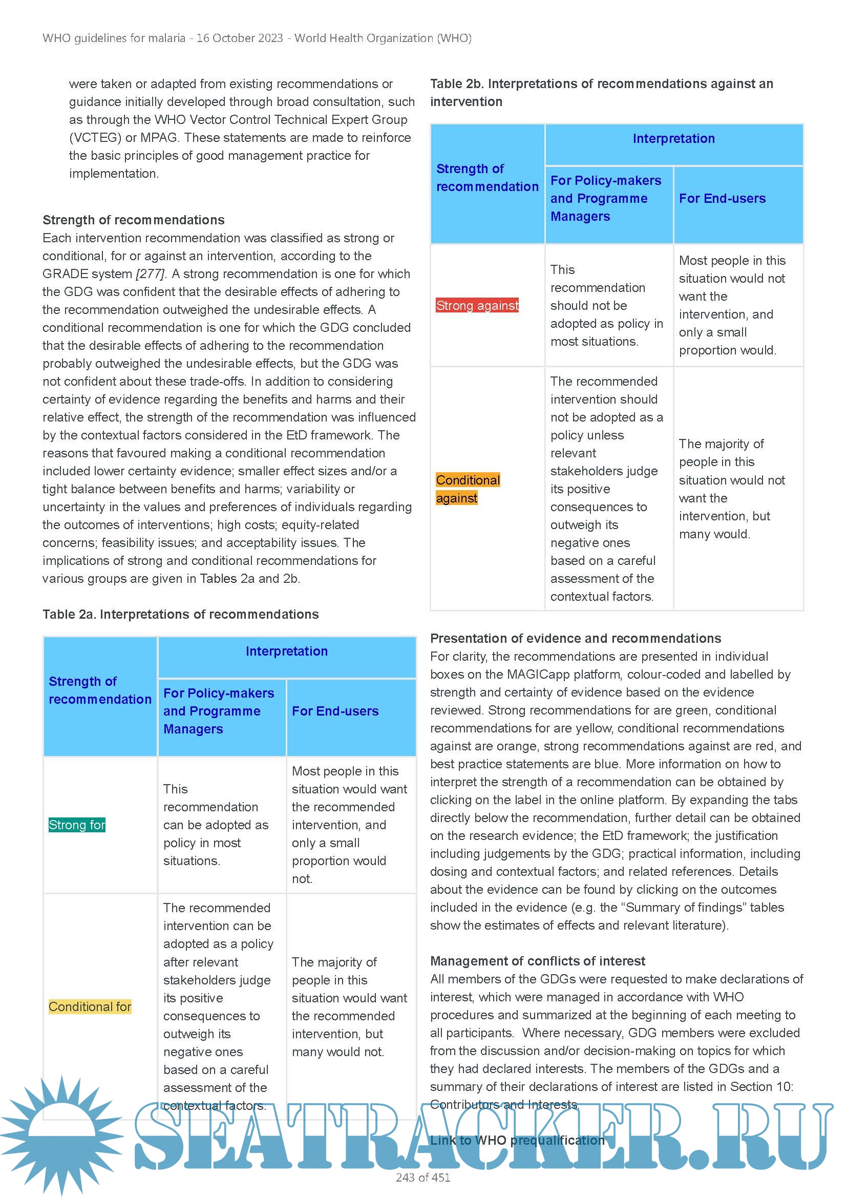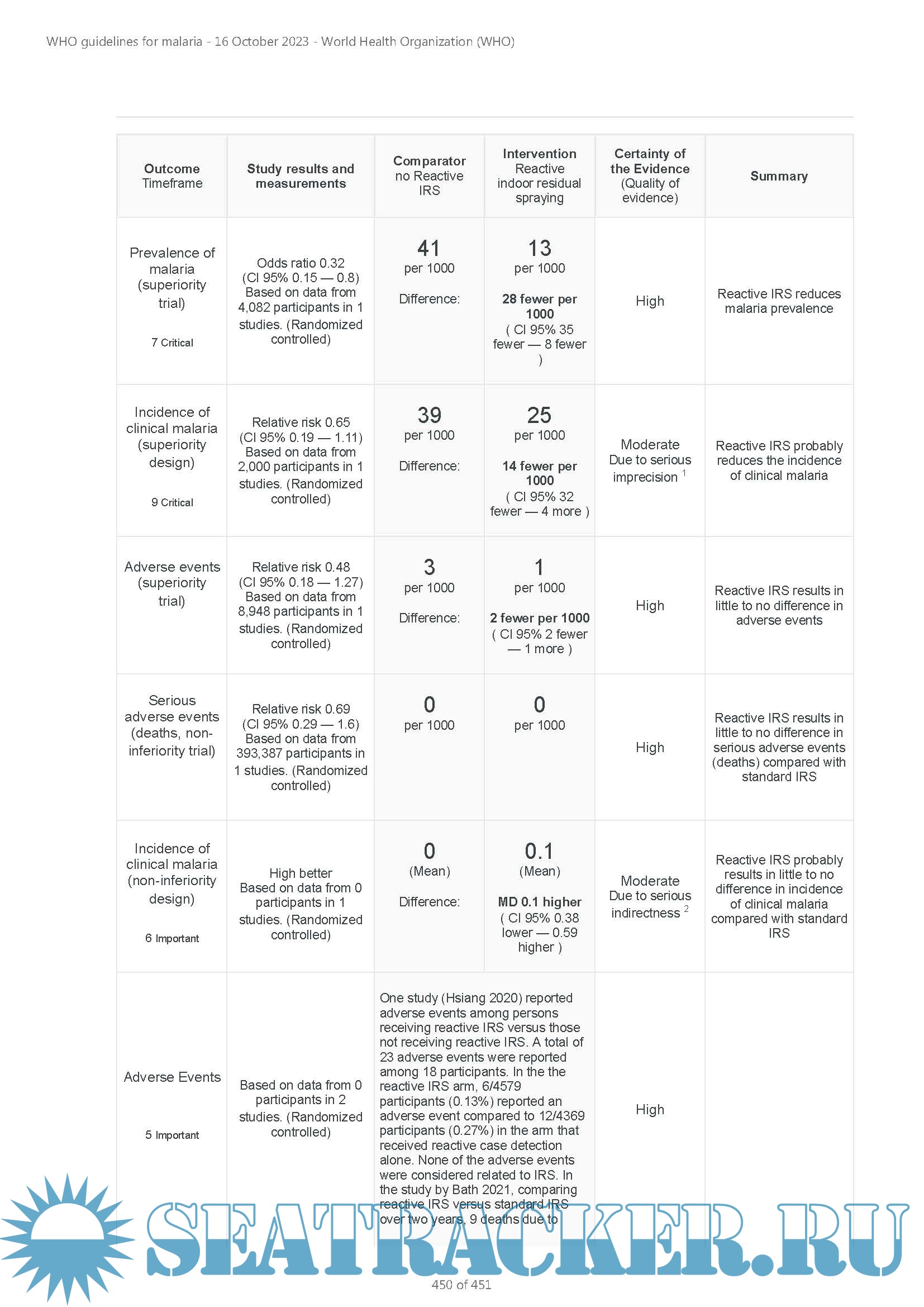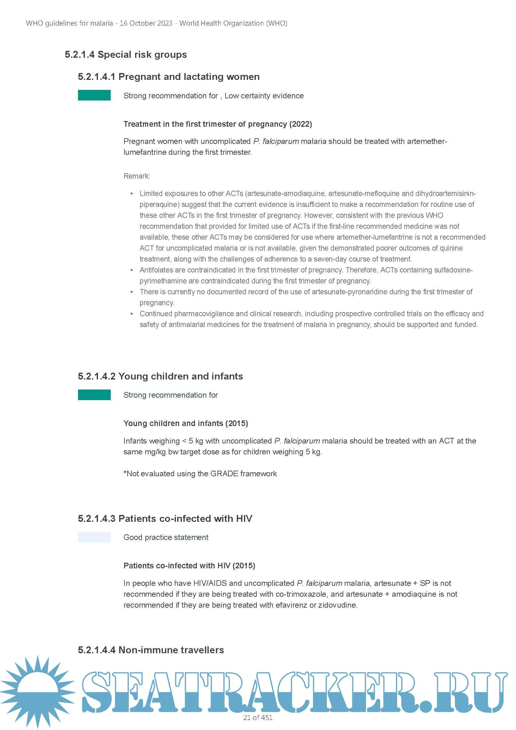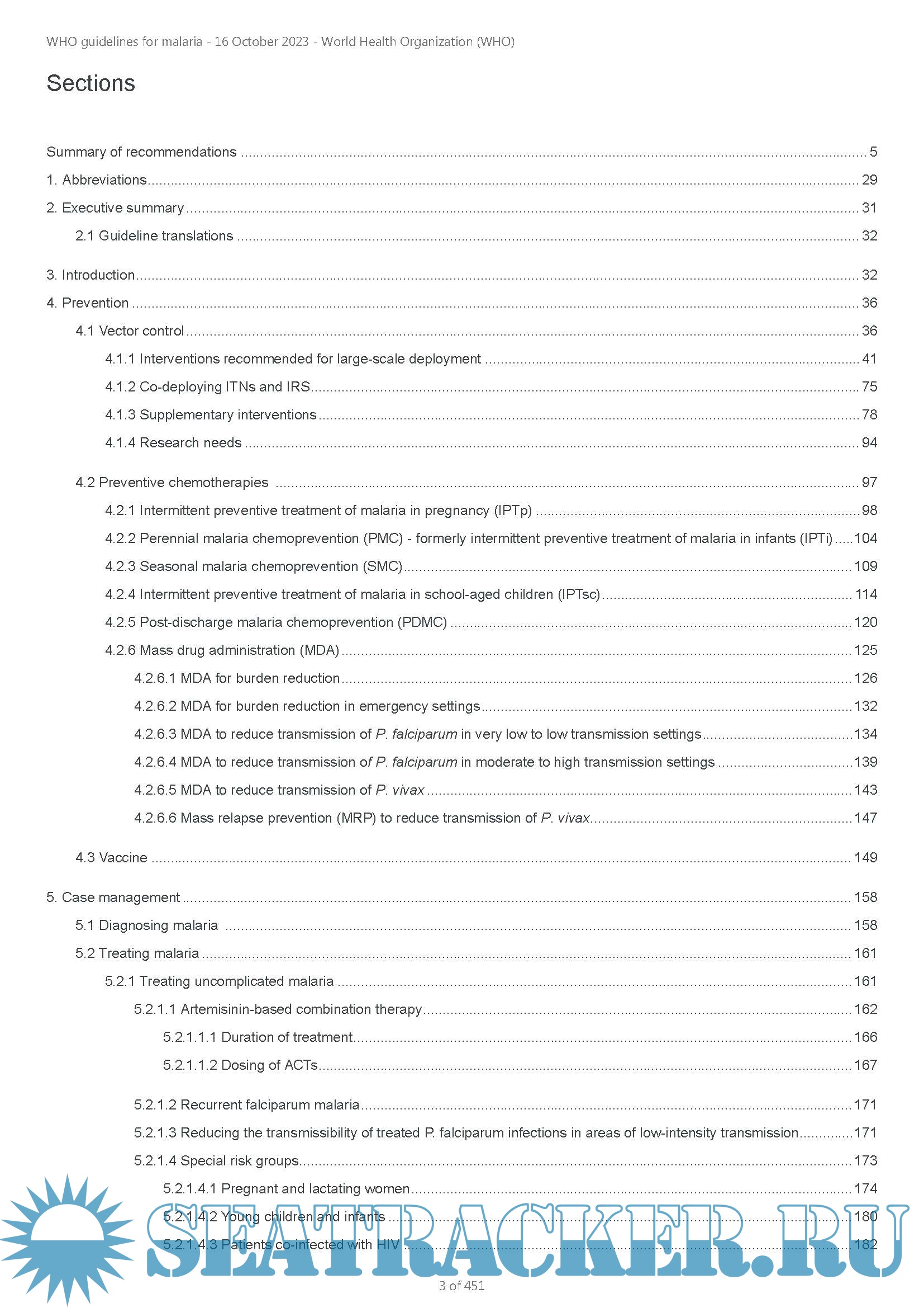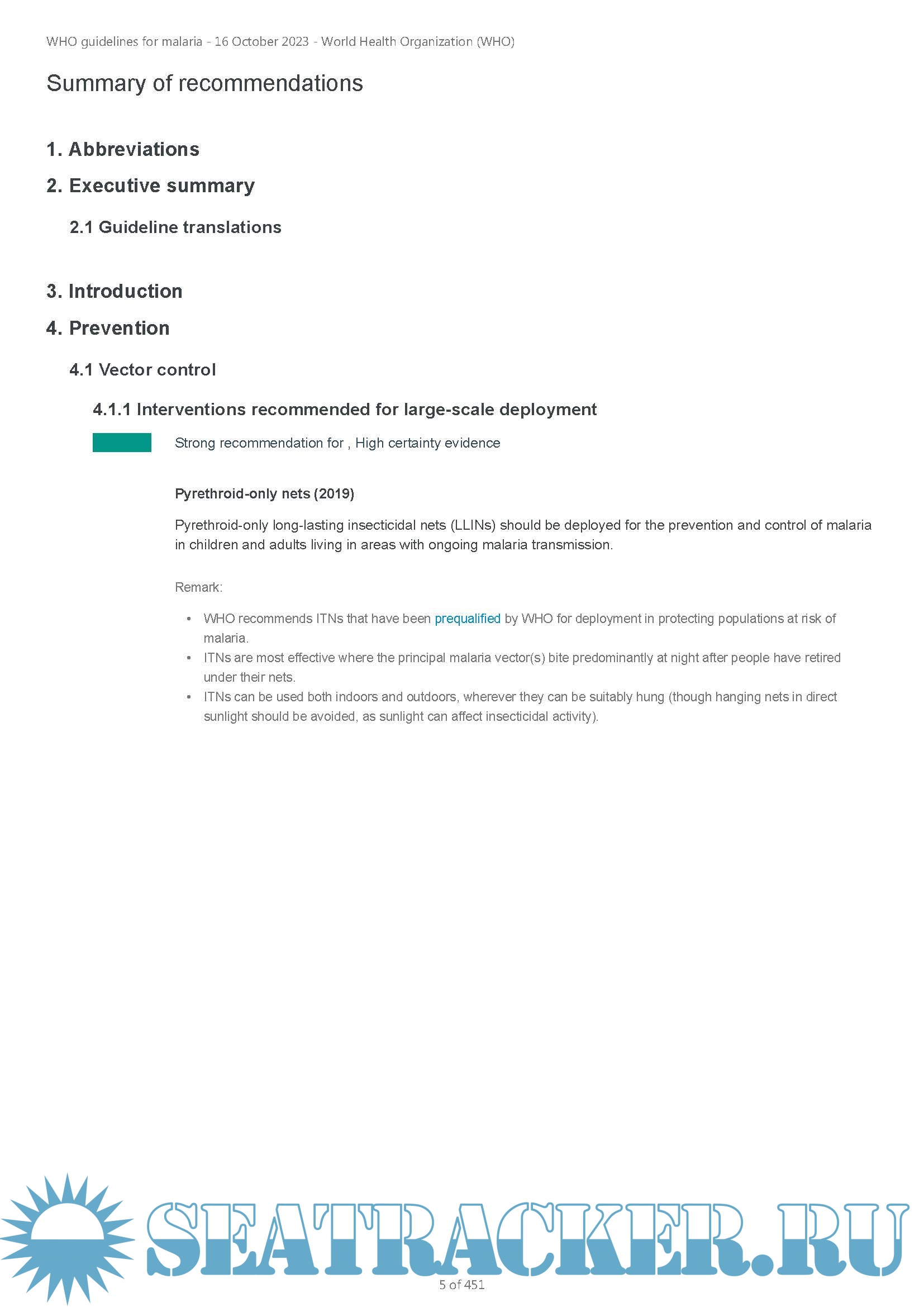 The WHO Guidelines for malaria supersedes previous WHO publications: the Guidelines for the treatment of malaria, third edition and the Guidelines for malaria vector control. Recommendations on malaria will continue to be reviewed and, where appropriate, updated based on the latest available evidence. Any updated recommendations will always display the date of the most recent revision in the MAGICapp platform.