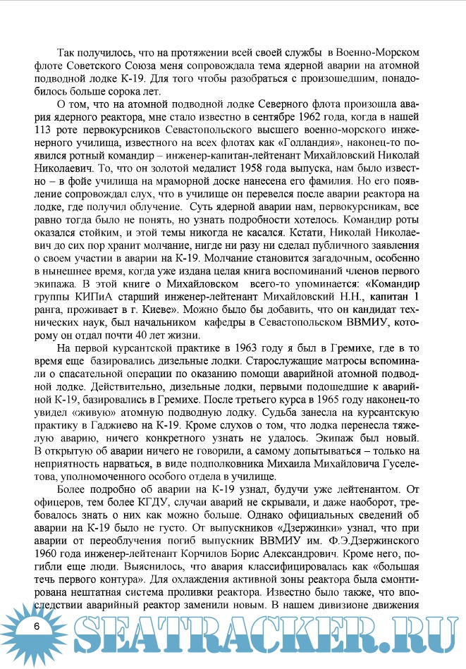 Описание: Ни об одной из аварий, произошедших на советских подводных лодках, столько не сказано, не написано и не показано, как об аварии на К-19. И все для того, чтобы скрыть от общественности правду о том, что же произошло 4 июля 1961 года на первом советском атомном подводном ракетоносце К-19.