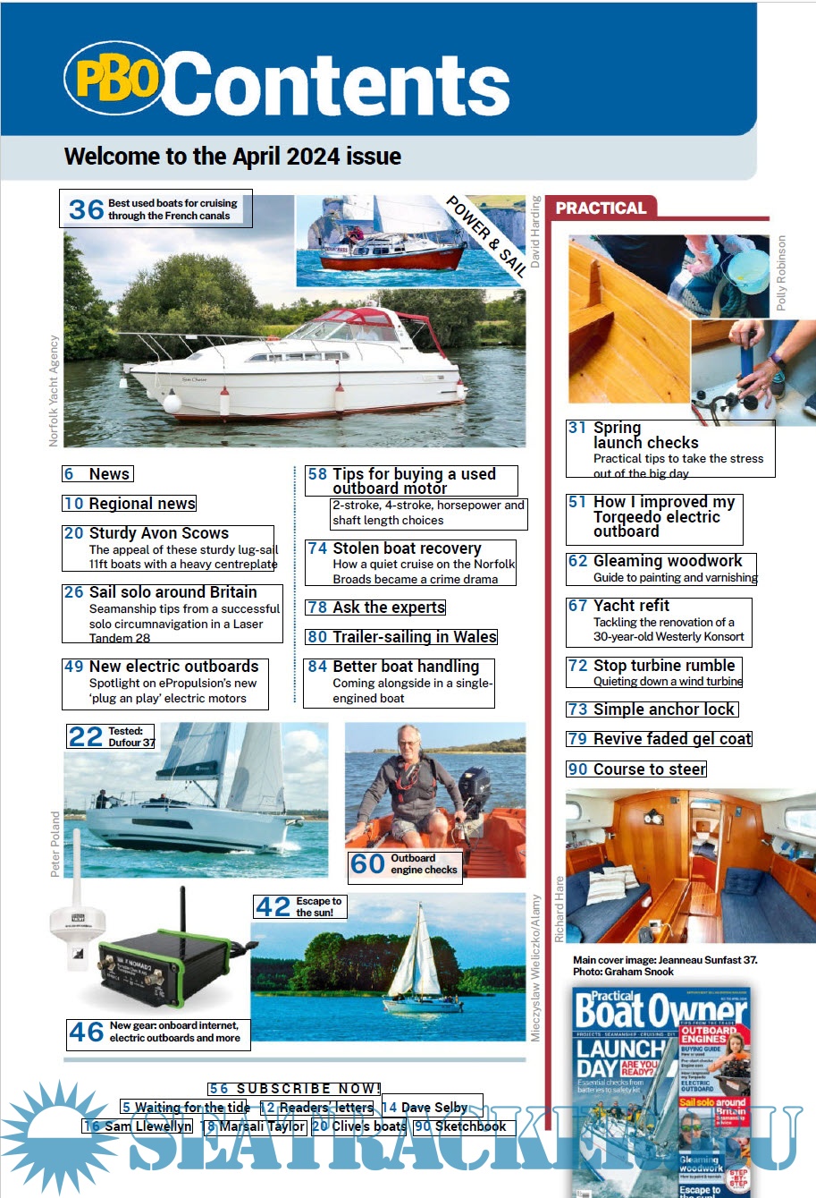 Year: 2024 Language: English Editor: Katy Stickland Genre: Periodical (magazine) Publisher: Future Publishing Limited Edition: April 2024 Format: PDF Quality: eBook Pages count: 94 Description: Practical Boat Owner is a British magazine about boats. It is published by IPC Media. It is a magazine that includes boat maintenance and repairing from baking bread on your boat to replacing your sprayhood windows. Also includes the latest news of sailing and motor boats from around the world