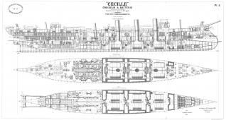Архивные чертежи французского крейсера AMIRAL CECILLE 1888 год