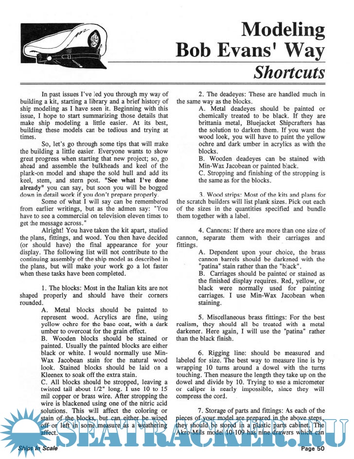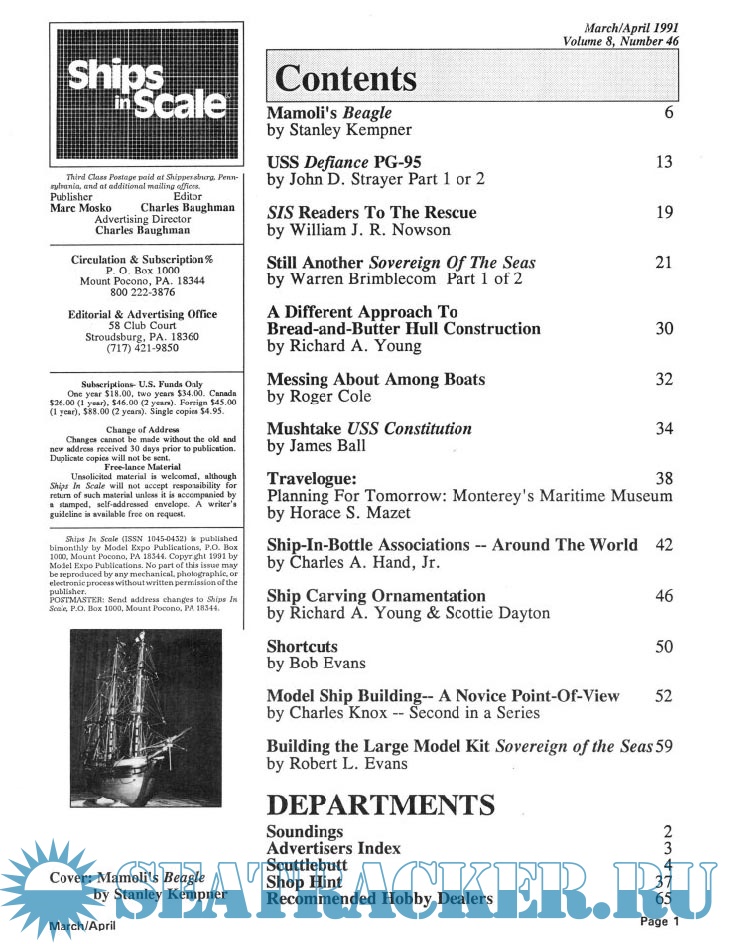 Year: 1991 Language: English Author: Scottie Dayton (Editor) Genre: Periodical (magazine) Edition: 1991-2 Format: PDF Quality: Scanned pages Pages count: 84 Description: Seaway is the home port for Seaways Ships in Scale magazine, the leading workshop and research magazine for the ship modeler. In the magazine we explore all levels of modeling experience, all types of ships, all kinds of models, all historical eras and all construction materials