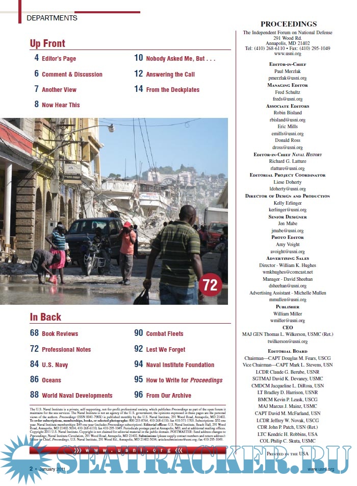 Year: 2011 Language: English Author: USCG Genre: Periodical (magazine) Edition: 2011-1 Format: PDF Quality: eBook Pages count: 100 Description: Proceedings of the Marine Safety & Security Council, the Coast Guard Journal of Safety at Sea, is the voice of the Coast Guard’s Marine Safety and Security Council. It began publication in 1944 and, over the decades, has reached an increasing level of recognition among the larger maritime industry and Coast Guard personnel. Currently, over 30,000 copies of Proceedings are mailed out each issue.Proceedings’ audience includes a large segment of the private maritime industry population, including retired officers, fishing vessel captains, river pilots, ocean scientists, marine engineers, tug/tow boat operators, shipping executives, insurance operators, and maritime lawyers. Other subscribers include U.S. Coast Guard and U.S. Navy personnel, mariners, reservists, Departments of Homeland Security and Transportation staff, and allied foreign national readers.The U.S. Coast Guard publishes Proceedings three times a year. Each edition of Proceedings-typically 80 to 100 pages-features a specific theme and is championed by a Coast Guard office, assigned based on the command’s expertise in that area. Recent themes have included: The 21st Century Maritime Workforce; Recreational Boating Safety; Waterways: America's Economic Engine; Safety Management Systems; and Improving Maritime Safety.