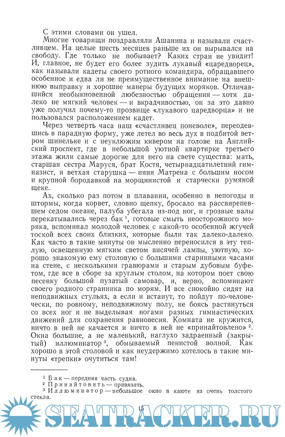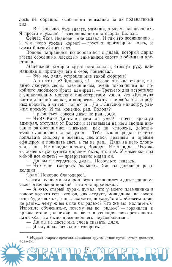 Описание: В октябре 1861 года винтовой корвет Российского Императорского флота, в экипаж которого входил и 18-летний кадет Константин Станюкович, покинул Кронштадт. Кораблю предстояло пройти моря от Балтийского до Японского; на его пути было три океана - Атлантический, Индийский, Тихий; за время путешествия моряки посетили Гамбург и Лондон, острова Мадейру и Зеленого Мыса, Батавию (Индонезию), Гонконг, Сан-Франциско, Гонолулу. Затем Константин Станюкович провел год в акватории Тихого океана на различных судах; был направлен на месяц в Сайгон, где стал невольным очевидцем самого острого момента в покорении французами Индокитая (эти впечатления легли в основу очерка «В Кохинхине»), а в сентябре 1863 года уже по суше через Китай и Сибирь вернулся в Санкт-Петербург.