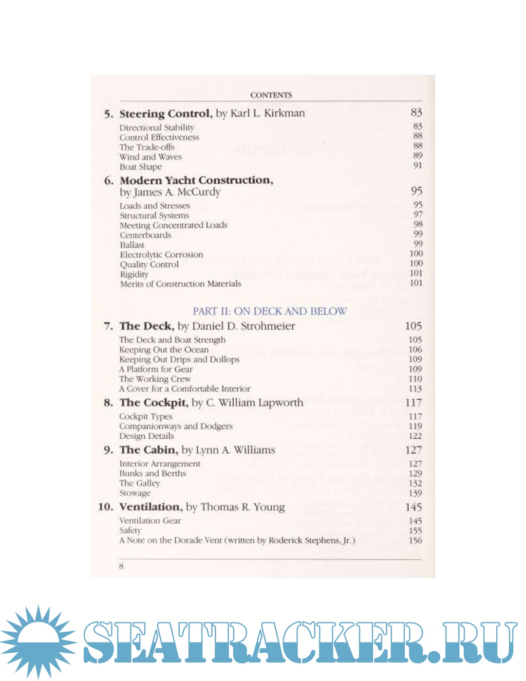 Year: 1987 Language: English Author: Davis S.L. Genre: Technical book Publisher: W W Norton & Co Inc ISBN: 0393033112 Format: EPUB Quality: eBook Pages count: 483 Description: Surveys trends in yacht design, discusses safety, modern construction techniques, spars, rigging, sails, and auxiliary equipment, and describes five good boats.