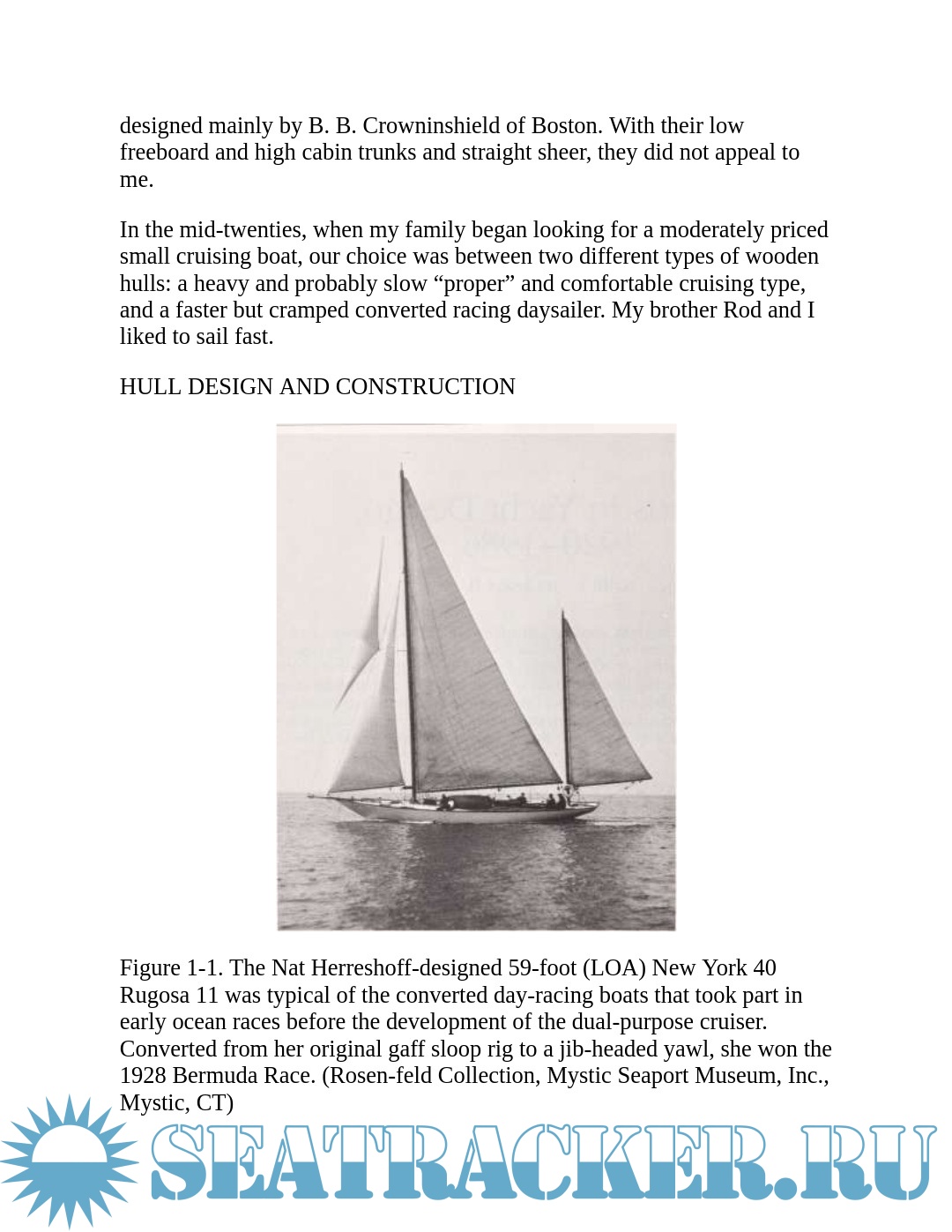 Description: Surveys trends in yacht design, discusses safety, modern construction techniques, spars, rigging, sails, and auxiliary equipment, and describes five good boats.