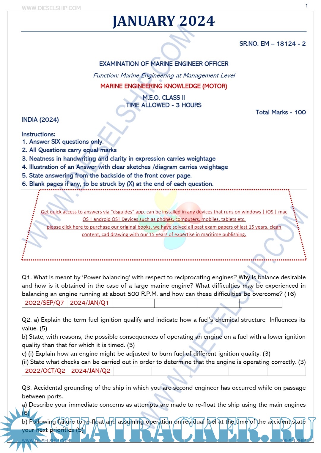 Description: M.E.O. Class II Question Paper set for Mercantile Marine Department (MMD), D.G. Shipping India Exams.