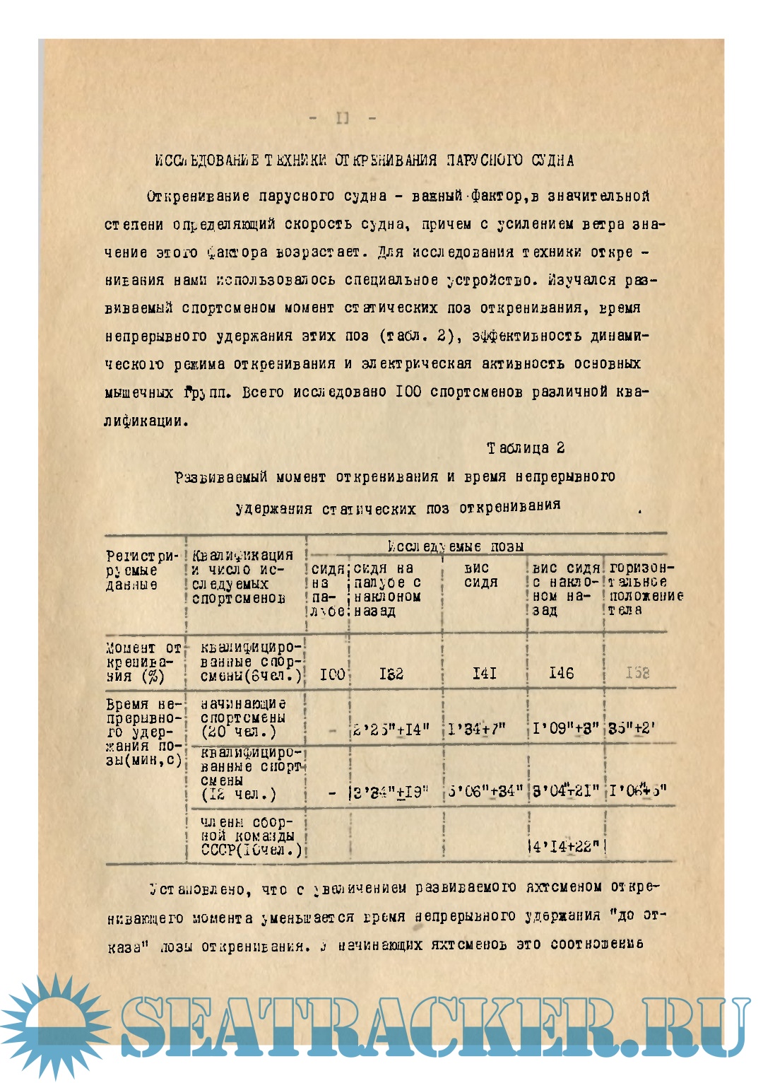 Исследование системы „яхтсмен-судно в процессе обучения и тренировки в парусном спорте