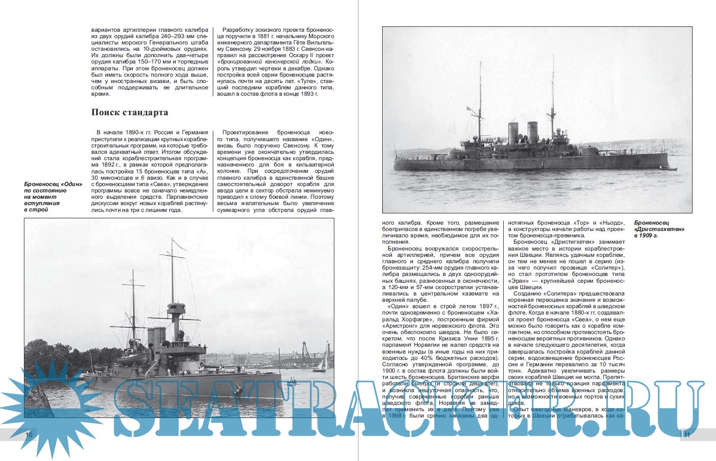 Описание: «Пренебрегать Швецией ради малочисленности ее населения и наших бывших побед над нею было бы неосновательно. Достаточно видеть ее флот и армию, хотя немногочисленные, но содержащиеся в изумительном порядке и примерной боевой готовности, чтобы понять, что военные недоразумения с нею вызовут значительные усилия с нашей стороны», – писал в 1910 г. русский посланник в Стокгольме. Тогда после гибели в Цусимском сражении основных сил Балтийского флота, Швеция впервые с начала XVIII в. стала сильнейшей на Балтике морской державой. Броненосцы, главная ударная сила шведского флота (Svenska marinen), находились в его составе более девяноста лет (всего шведы построили 15 броненосцев шести различных типов).