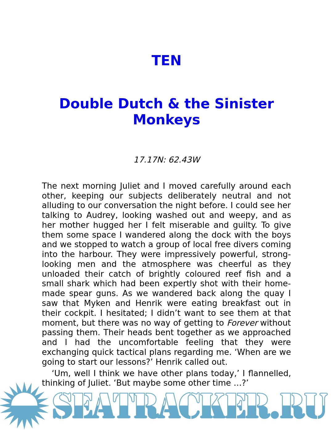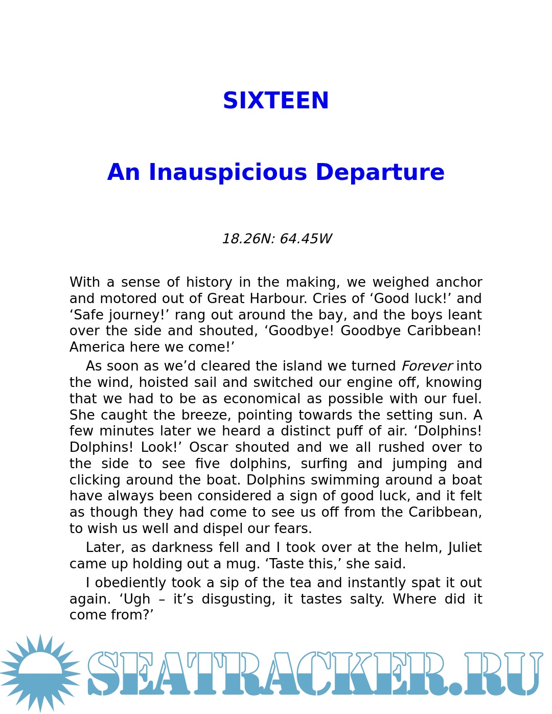 Description: Three years after his return from the Alaskan wilderness, Guy Grieve was living on the Isle of Mull in Scotland with his wife Juliet and their two young sons. Sick of the weather, perennial colds and their increasingly routine lifestyle, they'd all been getting restless. Finally, Guy and Juliet broke in spectacular style - they re-mortgaged their house and bought a yacht. Her name was Forever. The plan? To pick up Forever from her mooring in the Leeward Antilles off the coast of Venezuela, and sail around the West Indies before crossing the Atlantic back to Scotland. This was despite the fact that Guy, skipper of the expedition, had almost no sailing experience. Travelling around the lush tropical islands of the Caribbean and up the waterways of America, the family had countless sublime moments as they discovered the freedoms of sailing - anchoring in deserted bays, night passages under star-studded skies, and entering New York by water, greeted by the Statue of Liberty. But there were also testing times as they grappled with seasickness and bad weather, coping with young children at sea and learning to run a large, complex boat. Far from being the idyllic escape they'd envisaged, the journey forced Guy and Juliet to draw on reserves of courage and endurance they never knew they had. Wry, funny and buccaneering, this is a compelling tale of bravery and endeavour, out on the open sea.