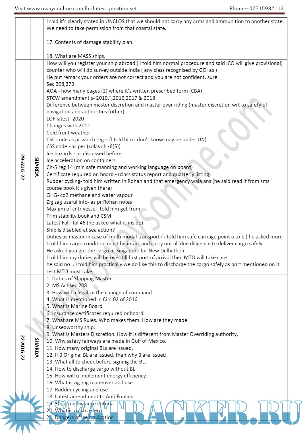 Description: Orals Question Bank for ASM (Advanced Shipboard Management) / Master's Mercantile Marine Department (MMD), India Examinations.