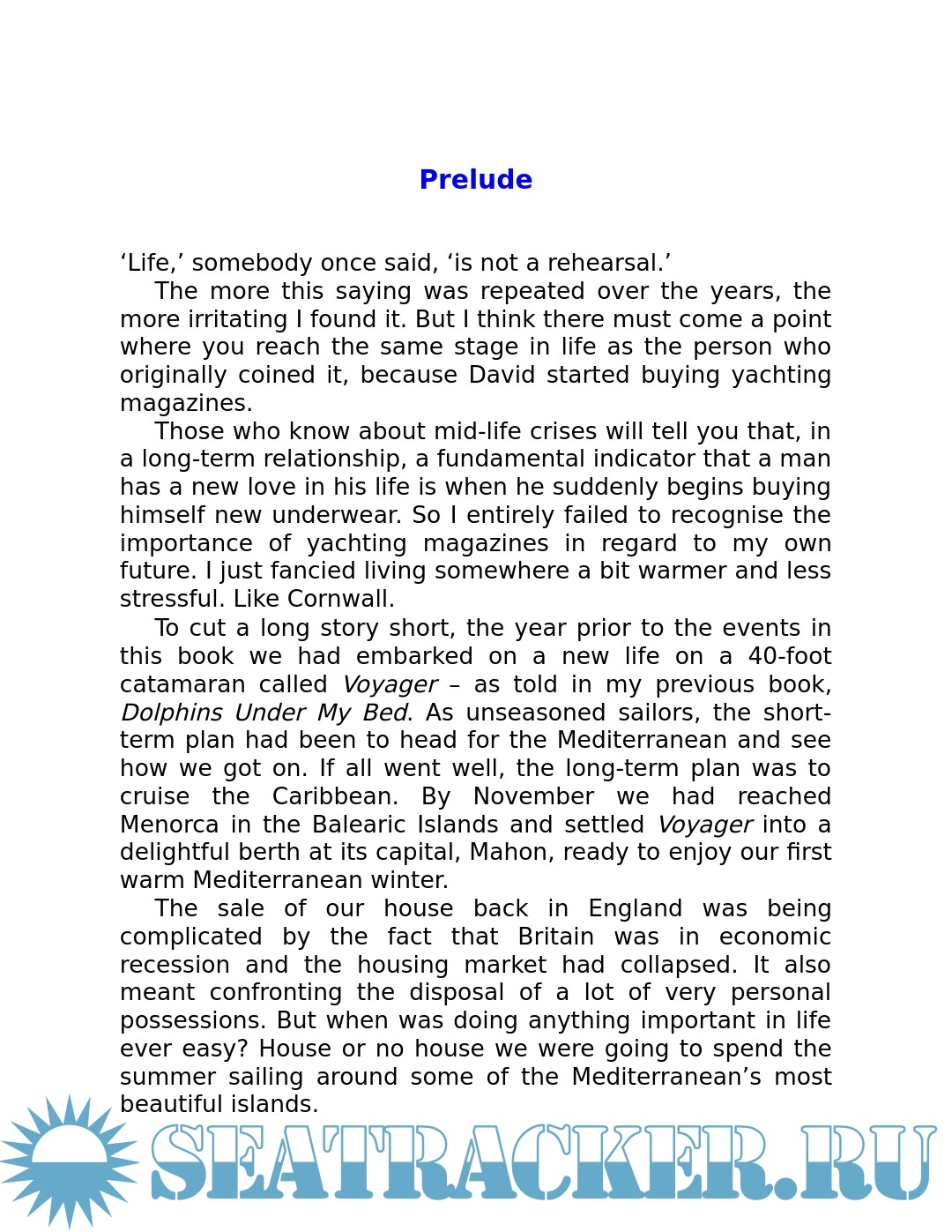ancient harbours and the people they meet, they also develop a fascination with the sea and its wildlife. And, whilst questioning the things we value and the nature of happiness, this book reveals the growing and sometimes amusing inter-dependence of two people alone at sea.