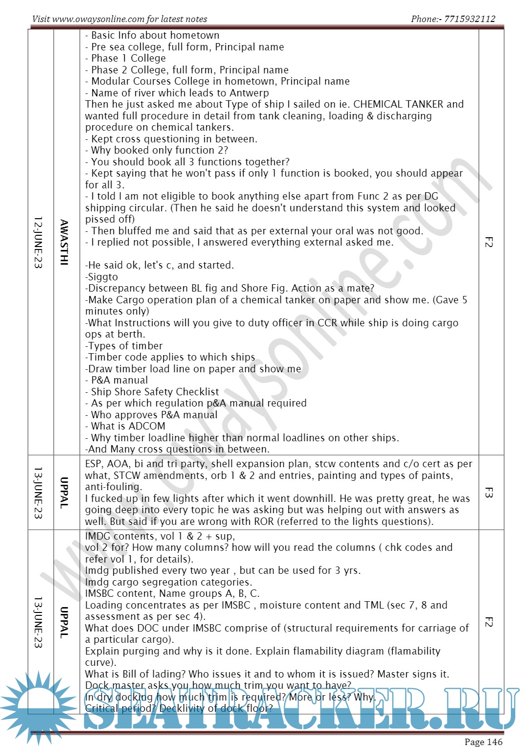 Orals Question Bank (February 2024) for Chief Mate F.G. Mercantile Marine Department (MMD), India Examinations