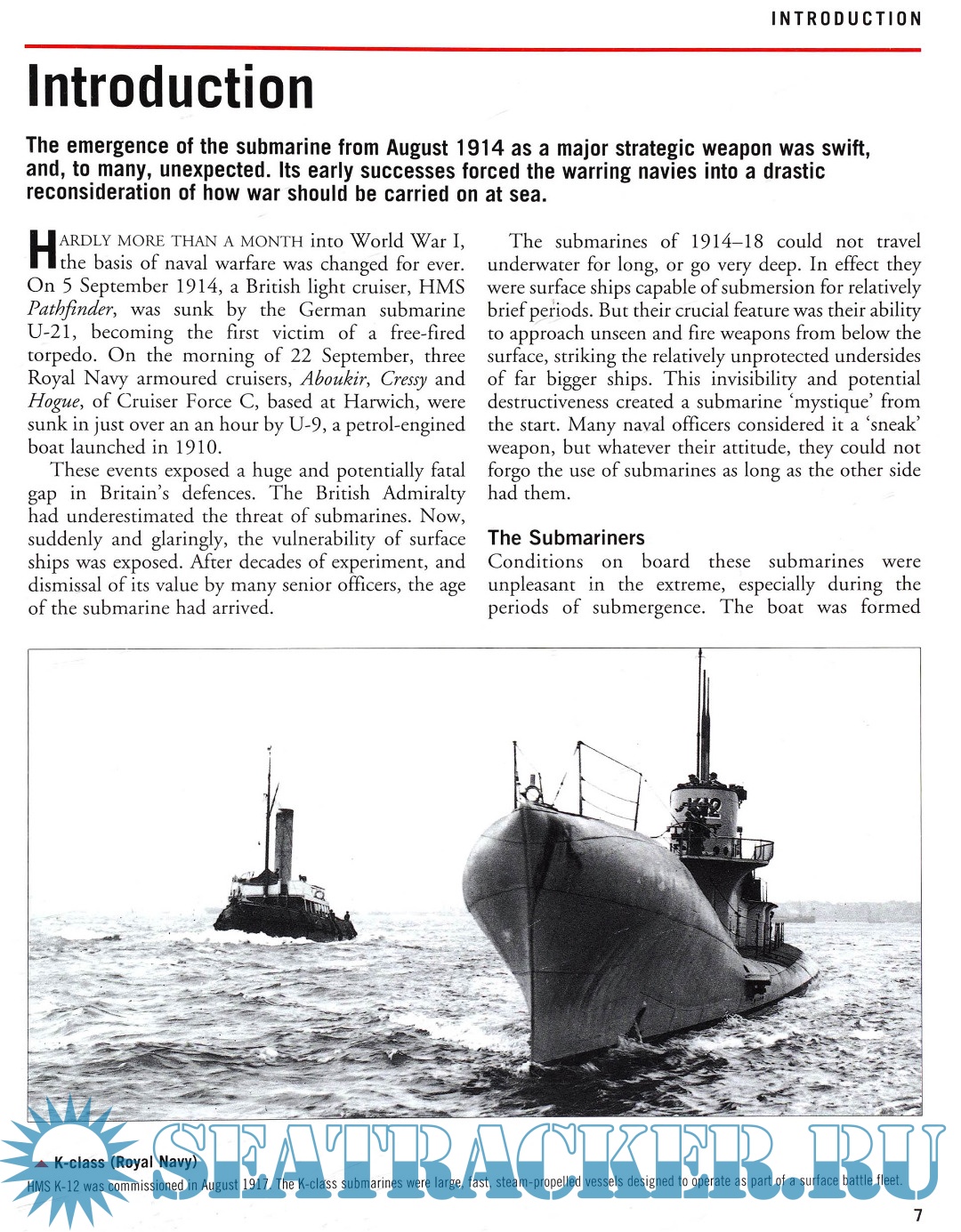 Divided by era, campaign, and country, the book includes sections on; submarine forces in 1914, technical developments during the 1930s, the Atlantic convoy war during World War II, Soviet submarine development during the Cold War, the introduction of nuclear-powered submarines, submarines of the Falklands War, and the latest ICBM carriers. Special emphasis is given to the U-Boats of World War II and arranged flotilla.