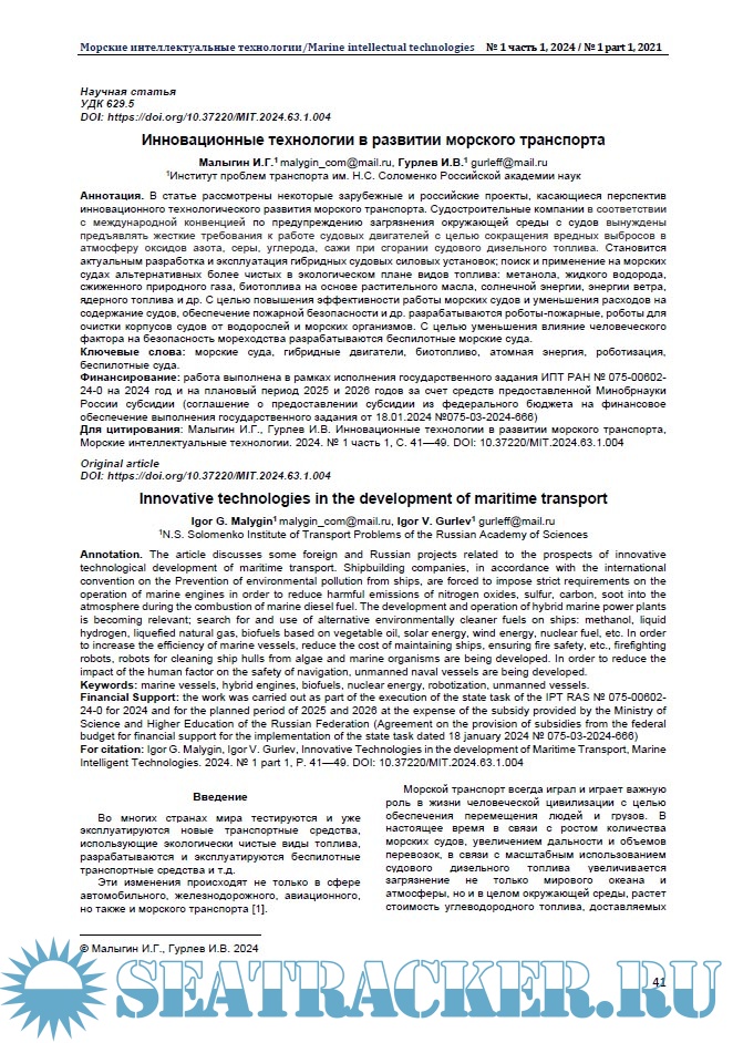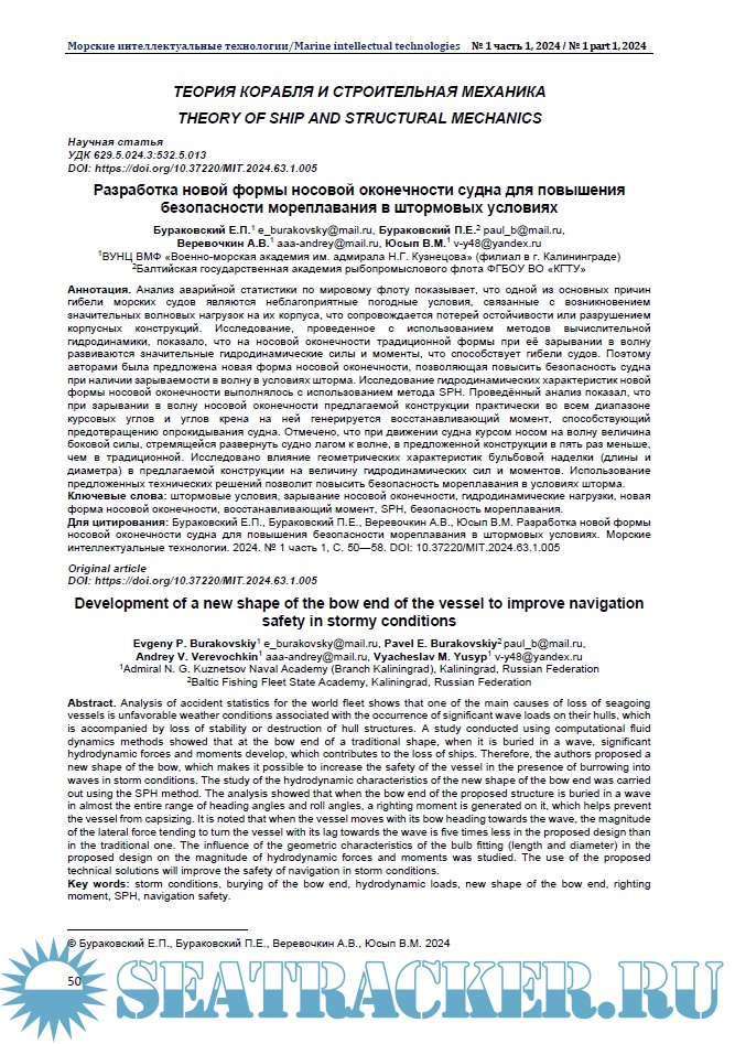Морские интеллектуальные технологии 2024 № 1 часть 1