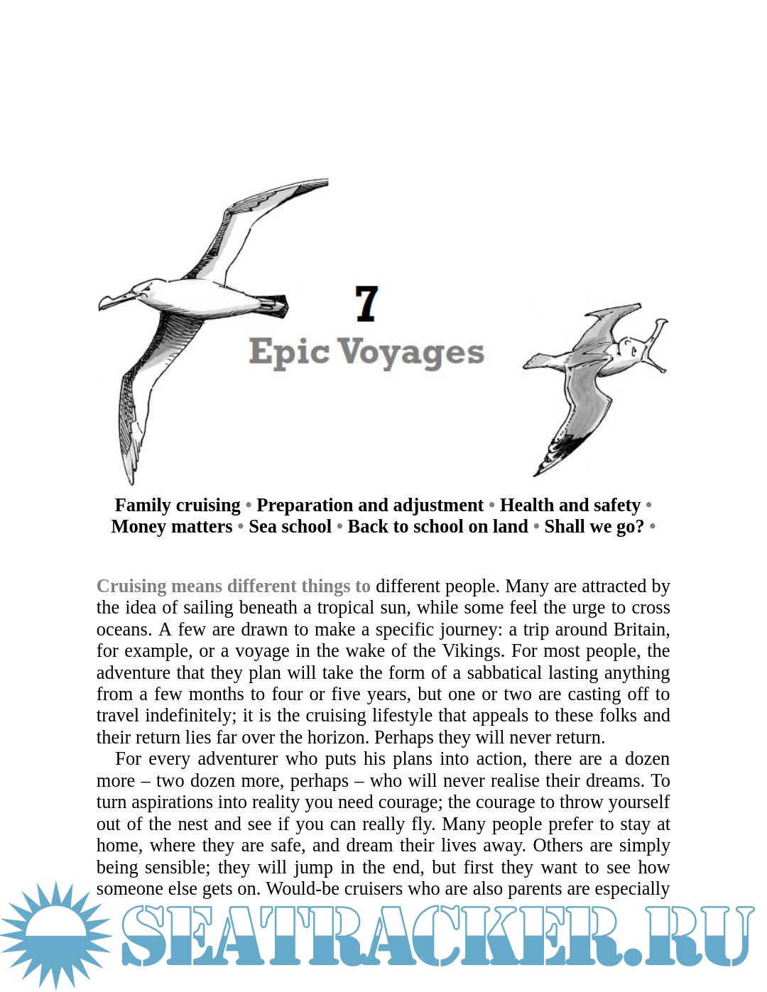 Introducing children to sailing, ideas to keep them from being bored on board, and tips for turning a mutineer into a midshipman Safety and suitability of different types of yacht; features to look for and those to avoid Dinghies suitable for use as both tender and sailing craft
