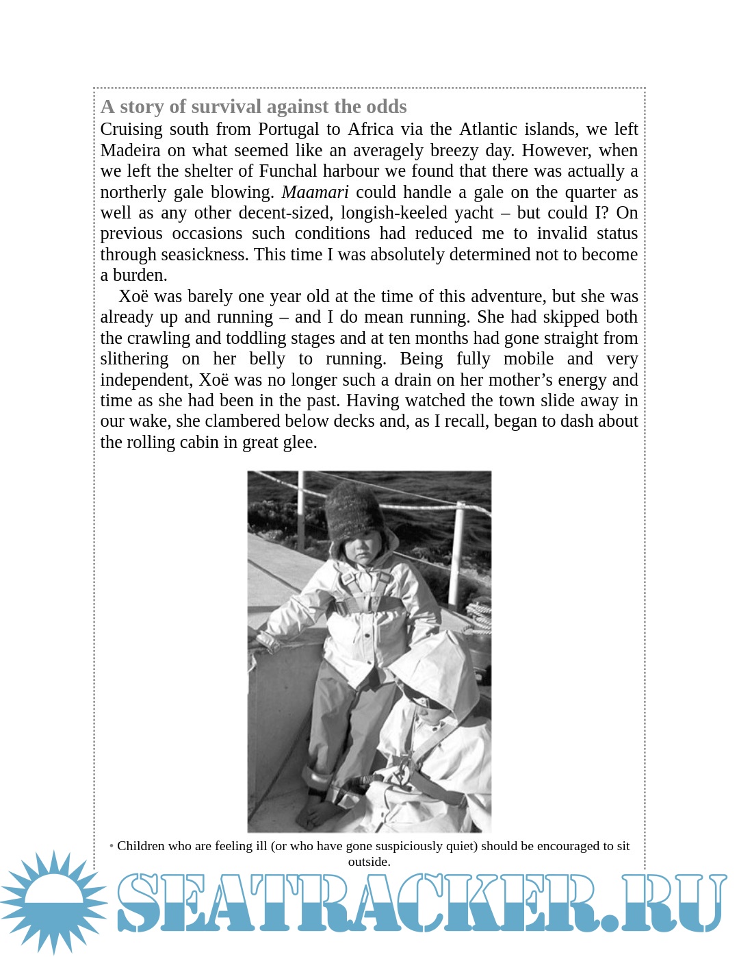 Personal safety and an in depth look at different types of children's lifejackets Ideas to help you cope with seasickness, or even avoid it altogether