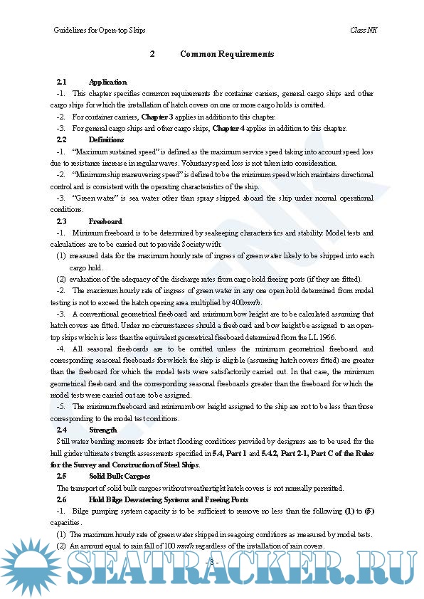 Therefore, based on the aforementioned IMO guideline and its own knowledge and experience, the Society developed its “Guidelines for Open-top Ships” to provide requirements related to the transport of cargoes on open-top ships. The Guidelines cover not only container carriers but also extend the original scope of IMO guideline to include general cargo ships and other cargo ships.