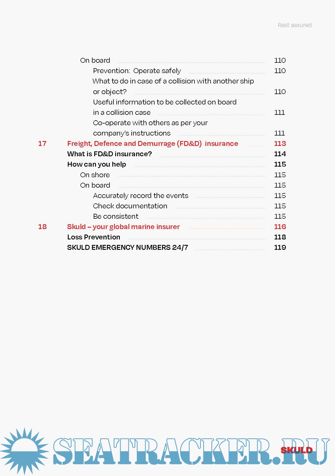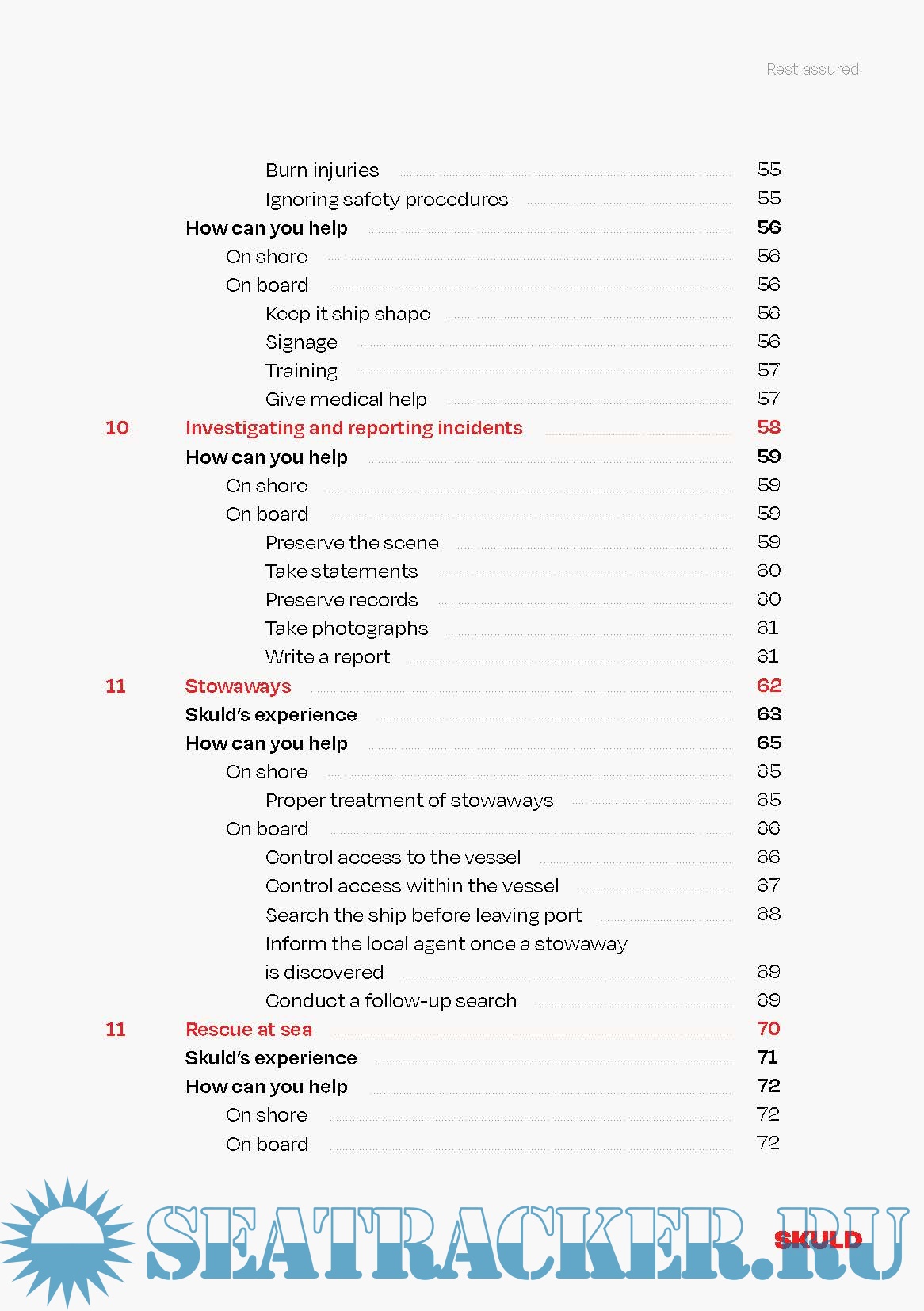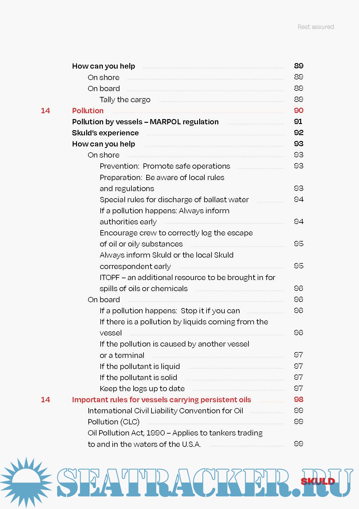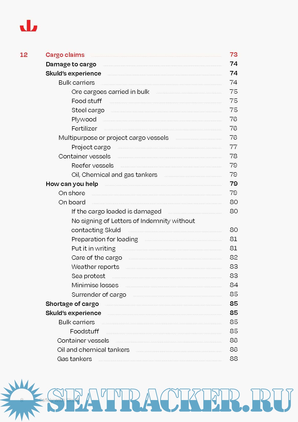 This booklet was written for the seafarers who serve on the vessels insured by Skuld. It includes Skuld's specific loss prevention experience gained over the many years we have been serving our members. The booklet is meant to be used as a reference book to which chapters the seafarers can turn whenever they look for answers to their questions.