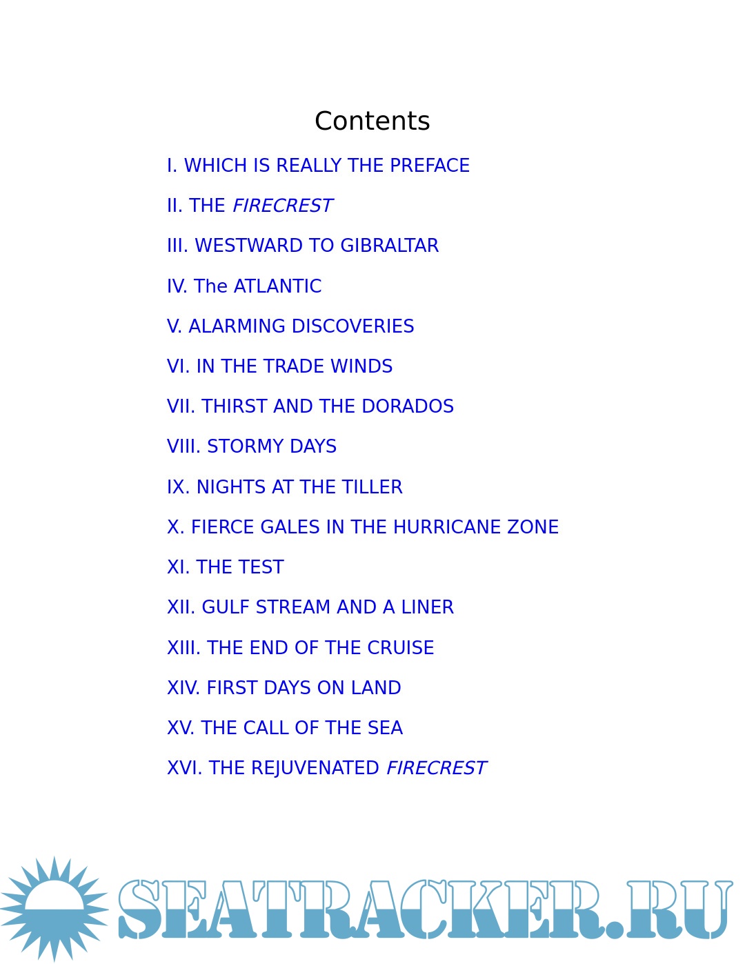 Description: "The name of Alain Gerbault has become a legend with small-boat sailors... Gerbault was one of the first men to achieve the crossing of the Atlantic single-handed from east to west ; his voyage inspired others to follow in his wake ; the experience he gained in deep sea navigation, and in the arrangement of his sails best suited to the Trade Winds, was written down in The Flight of theFirecrest, information which was (and still is) indispensable reading for those who came after him. The Firecrest was an English cutter 39 ft. overall, built in 1892. The author purchased her in 1921, sailed her to Cannes, and set out for Gibralter and the Atlantic in April 1923. He arrived in New York 101 days later, after a voyage of great endurance. His sails were tornto ribbons, the main supply of his drinking water spoiled, and he lay beca lmed in tropical heat with only a cup of fresh water a day. The rains came just in time to save him from death by thirst. Alain Gerbault's grave in Bora-Bora, one of the Oceanic Leeward Isles group, is a sober monument, embellished with a medallion of the navigator. His defence of the native cause in the South Seas islands has ensured the permanence of his name in the annals of sociology. This book perpetuates his renown as an ocean-going yachtsman." -- from book jacket.