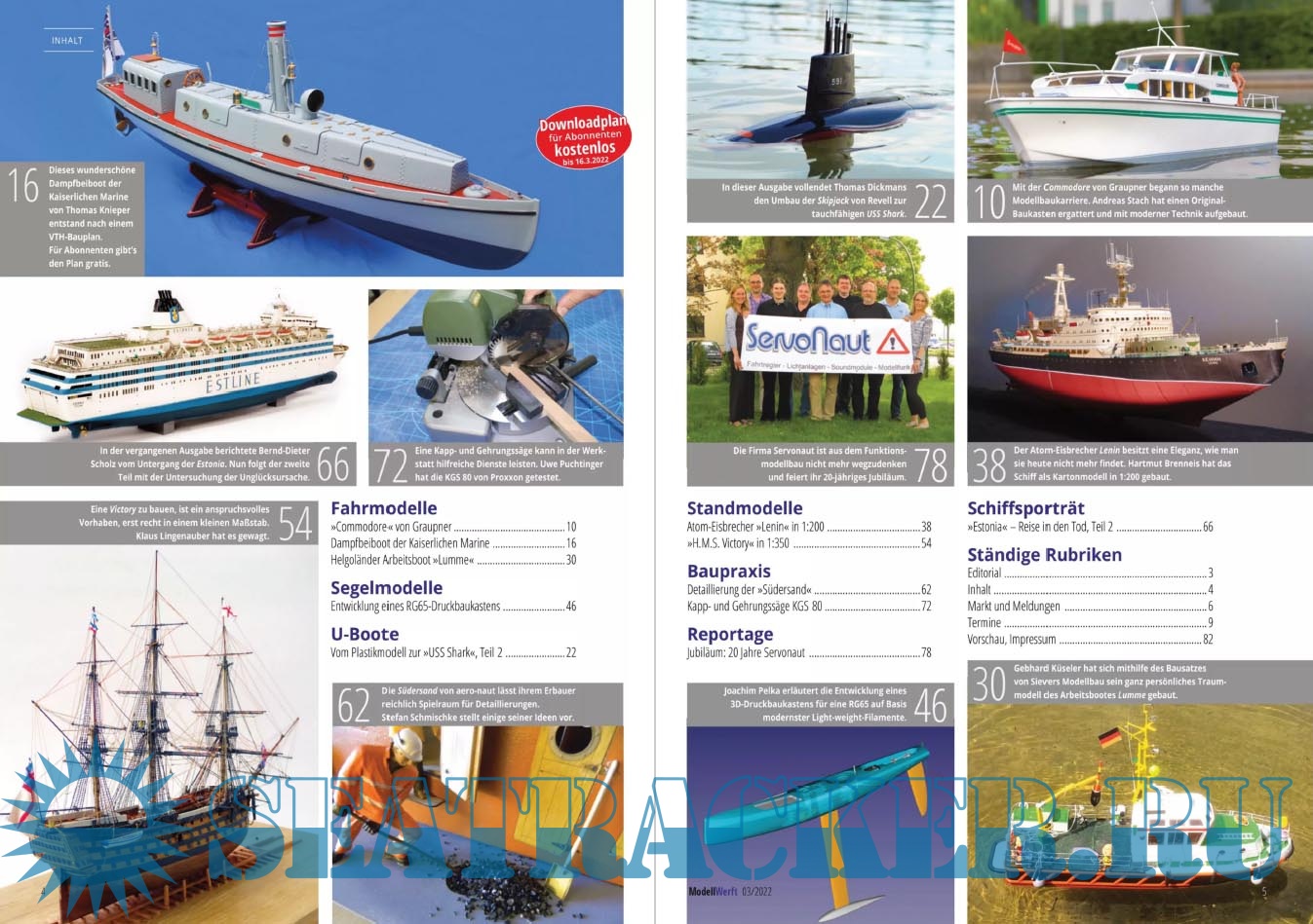 Year: 2022 Language: German Author: Eric Schafenrort (Redaktor) Genre: Periodical (magazine) Edition: 203-3 Format: PDF Quality: eBook Pages count: 84 Description: Das führende Fachmagazin für Schiffsmodellbauer. Egal ob Stand- oder Fahrmodell, ob kleines Segelboot oder gigantisches Kreuzfahrtschiff. Die Modellwerft informiert über Neuheiten, hilft mit Bautipps und fasziniert mit besonderen Reportagen.