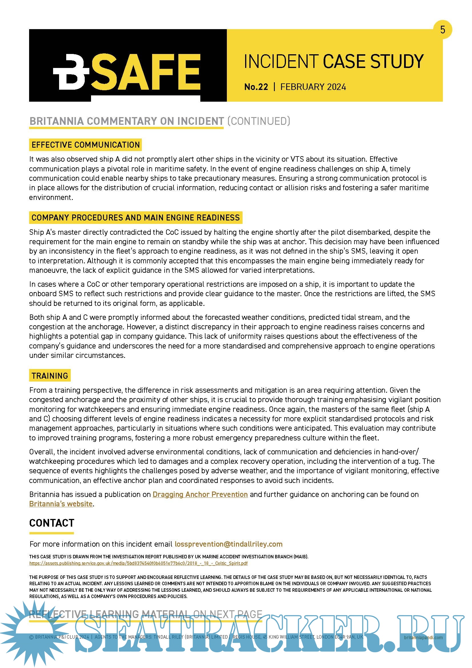 BSafe: Incident Case Study No.23 (May) - Britannia P&I Club [2024, PDF]