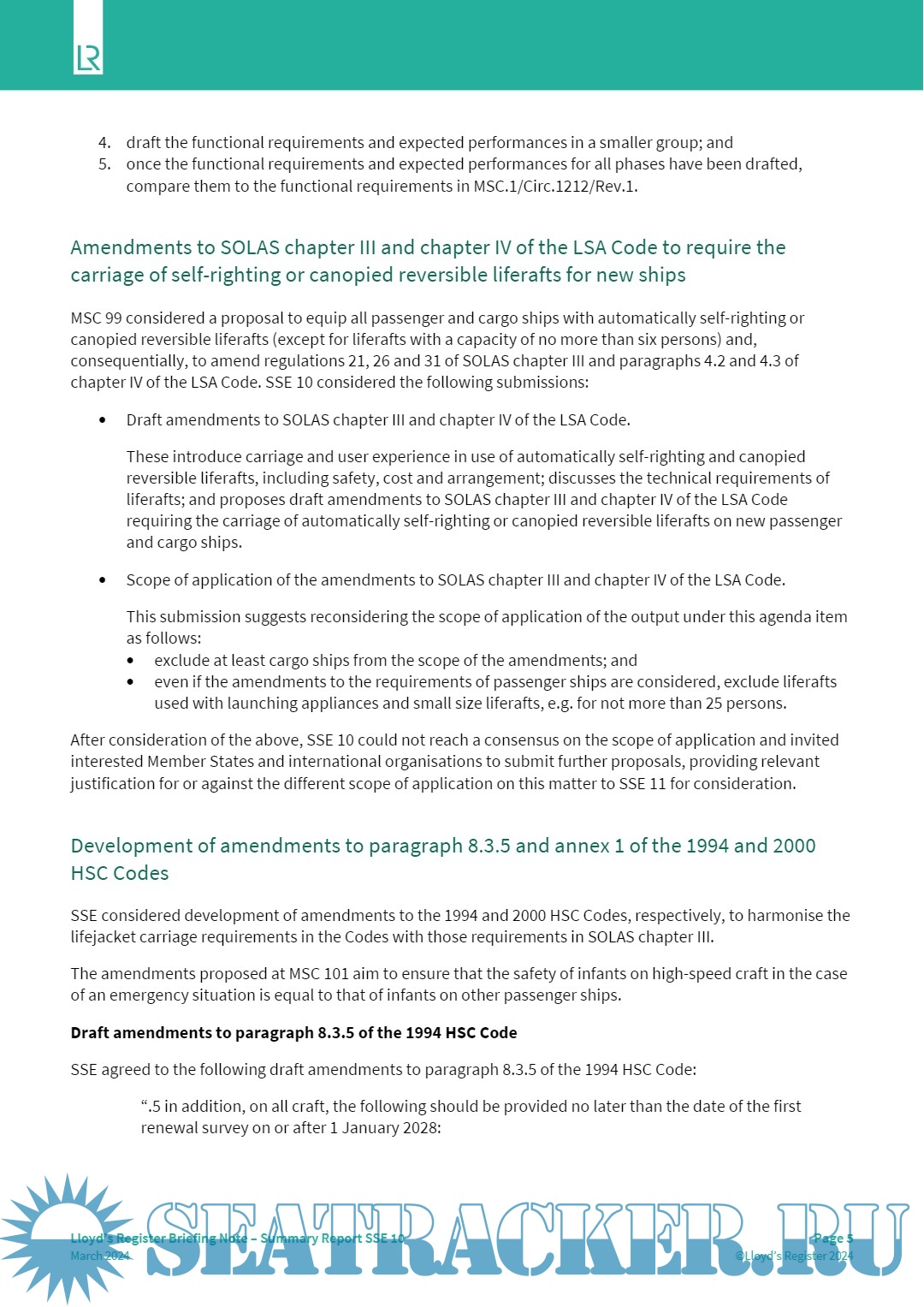 LR Summary Report for the IMO Ship Systems and Equipment Sub-Committee (SSE 8) - Lloyd's…