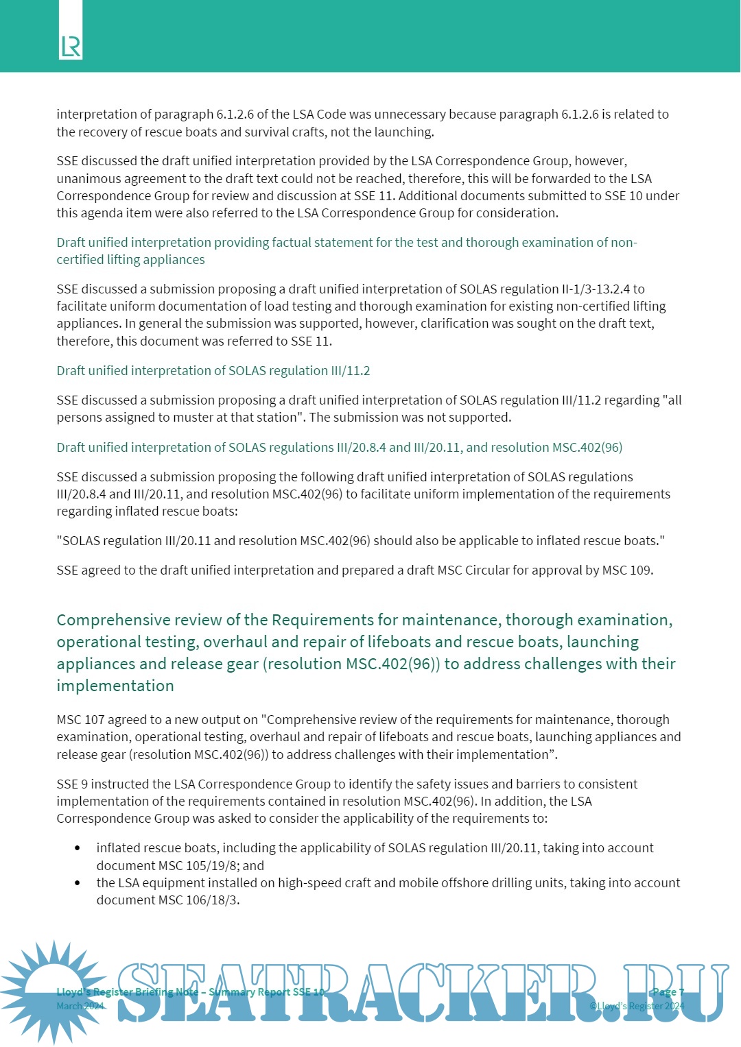 LR Summary Report for the IMO Ship Systems and Equipment Sub-Committee (SSE 9) - Lloyd's…