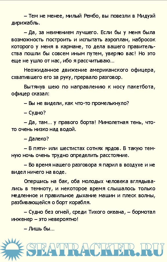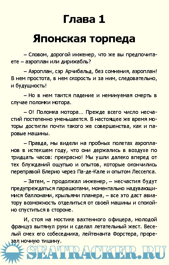 Содержание Глава 1. Японская торпеда Глава 2. Импровизированная лодка Глава 3. В крепости Мидуэй Глава 4. Общая родина Глава 5. Проект инженера Глава 6. Звездный флаг Глава 7. Случайный аэроплан Глава 8. Изменник Глава 9. Утренний отлет Глава 10. Над Тихим океаном Глава 11. На краю вулкана Глава 12. Погоня Глава 13. Один среди ночи Глава 14. Торжественный спуск аэроплана Глава 15. На крейсере "Колорадо" Эпилог