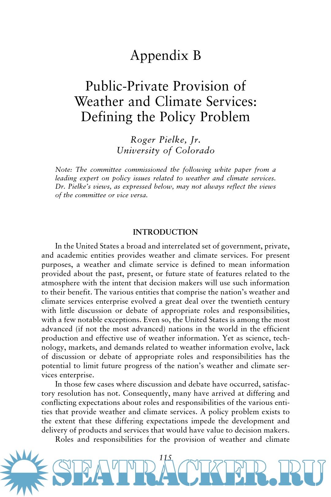 Year: 2003 Language: English Author: Committee on Partnerships in Weather and Climate Services Genre: Manual Publisher: Committee on Partnerships in Weather and Climate Services Format: PDF Quality: Scanned pages Pages count: 239 Description: Decades of evolving U.S. policy have led to three sectors providing weather services - NOAA (primarily the National Weather Service [NWS]), academic institutions, and private companies. This three-sector system has produced a scope and diversity of weather services in the United States second to none. However, rapid scientific and technological change is changing the capabilities of the sectors and creating occasional friction. "Fair Weather: Effective Partnerships in Weather and Climate Services" examines the roles of the three sectors in providing weather and climate services, the barriers to interaction among the sectors, and the impact of scientific and technological advances on the weather enterprise. Readers from all three sectors will be interested in the analysis and recommendations provided in "Fair Weather".