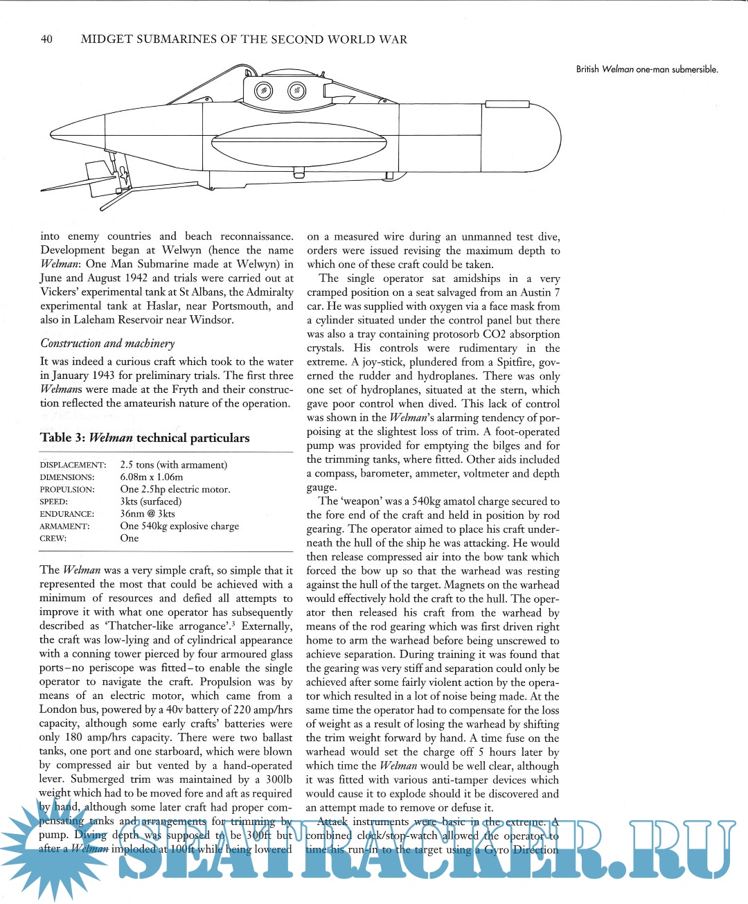 В книге Midget Submarines of the Second World War британский историк Пол Кемп рассказывает о новом классе субмарин появившемся в годы Второй мировой войны - сверхмалых лодках и человекоторпедах.