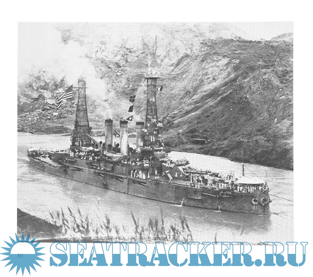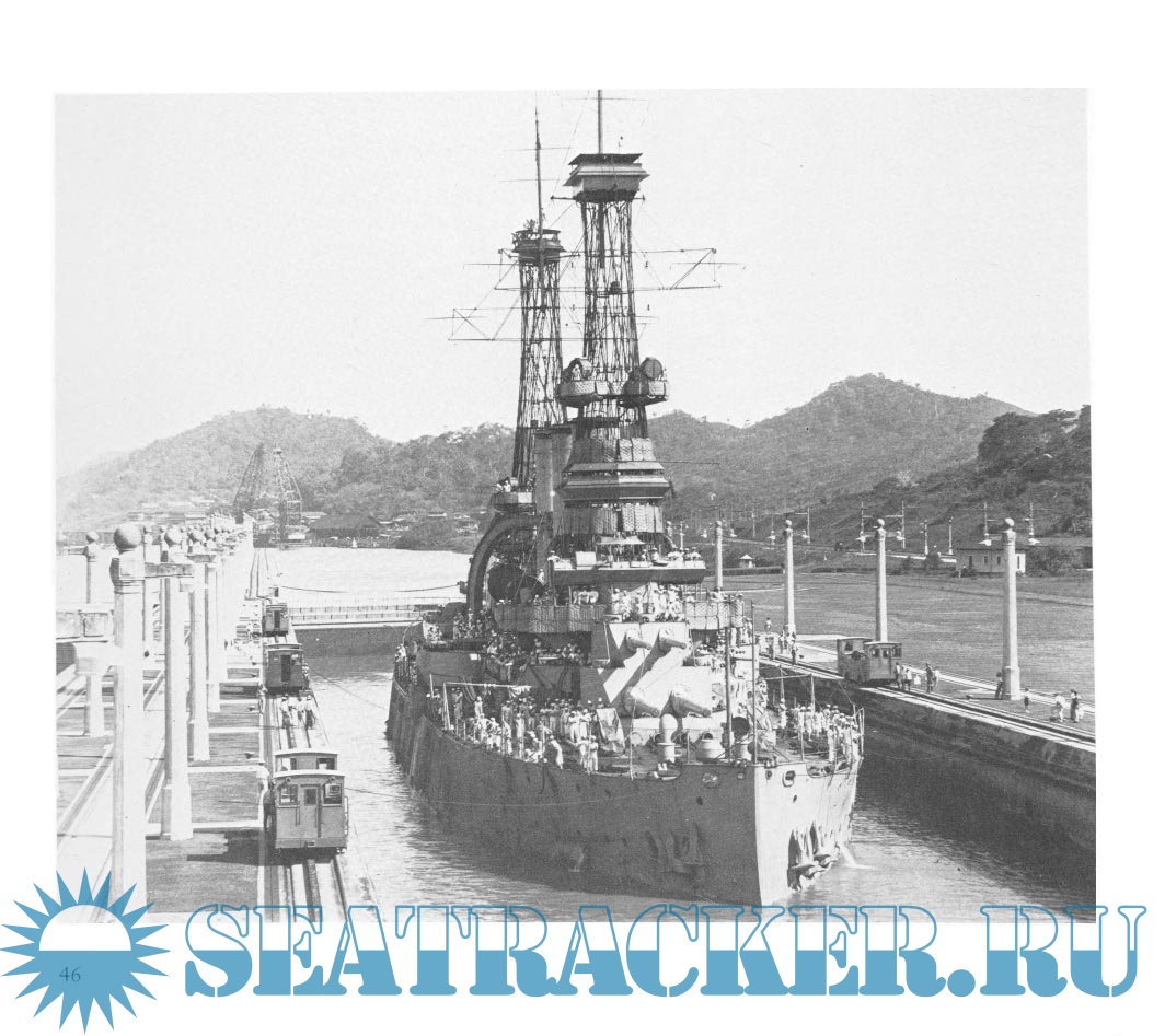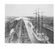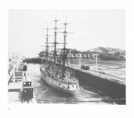 Description: This is a photographic and narrative view of shipping that passed through the canal in the first half of the twentieth century, opening with a concise history of the canal itself. The black & white photos were taken by an employee/photographer from advantageous viewpoints along the route. Due to the land elevation they give an almost aerial view of the ships. The book is divided into three chapters devoted to freighters, passenger liners, and warships. Along with each photo is a brief history of the vessel shown.