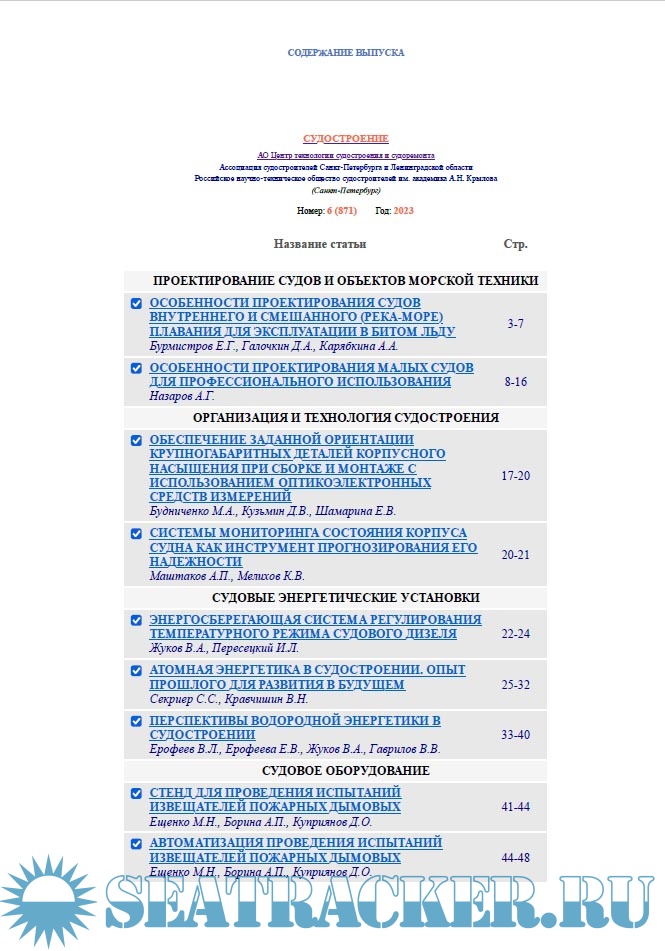 Журнал «Судостроение» 871 ноябрь-декабрь