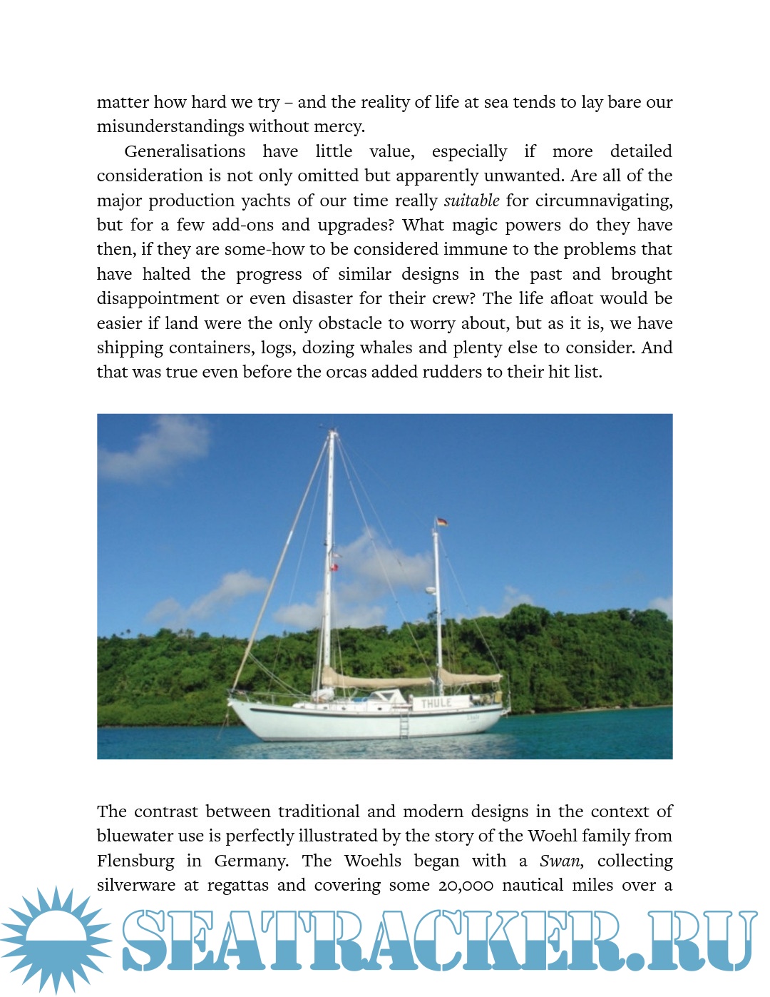 Description: Peter Foerthmann has been the first port of call for bluewater sailors seeking advice in steering matters for decades. His unrivalled expertise - the product of a lifetime developing and manufacturing windvane self-steering systems and contemplating their every complexity - continues to draw enquiries from all over the world. Half a century of experience with both his own boats (several dozen have come and gone over the years) and other people's (Peter has installed self-steering gear for literally thousands of sailors) has left him with a treasure trove of invaluable information to share. This book focuses on the attributes that make a yacht suitable for bluewater passagemaking. It examines the differences between traditional and more recent design conventions and their implications for offshore use, explains why some modern boats may not be such a good idea for long-distance cruising and gives sailors in search of a timeless home from home plenty of practical advice about the features to look out for (and the features to avoid) if they want serious fun on the oceans with as little as possible left to chance.