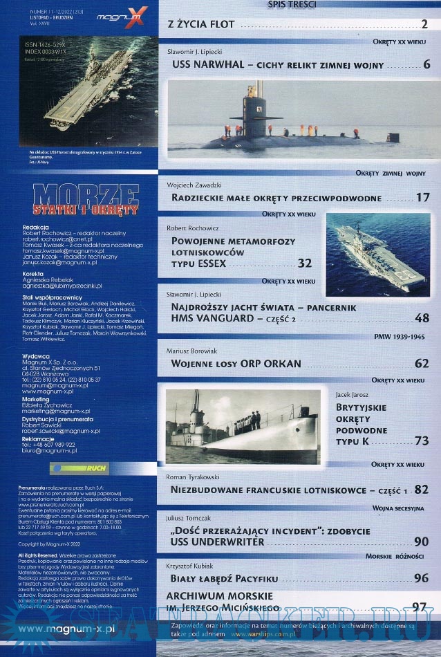 Description: Польский морской журнал. Издается с 1996 года, первоначально как ежеквартальный. С 1999 года издается раз в два месяца, а с 2007 года-как ежемесячный. Первоначально назывался Morza Statki i Okrety, в 2006 году переименован в Morze Statki i Okrety. С 2004 года полностью цветной (ранее только вставки). В 2008 году стали издаваться специальные выпуски, первоначально нерегулярные. С 2014 года выпускается как обычное издание и специальное издание, с непрерывной нумерацией.